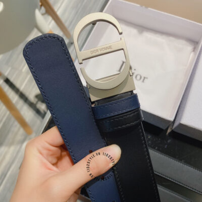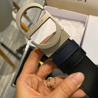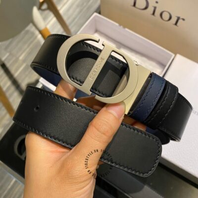 Hình ảnh sản phẩm thắt lưng nam hàng hiệu Dior dây da đen mặt khóa màu ghi xám: