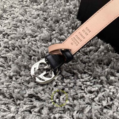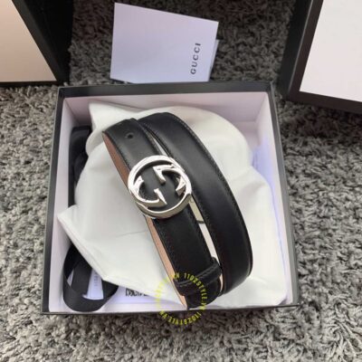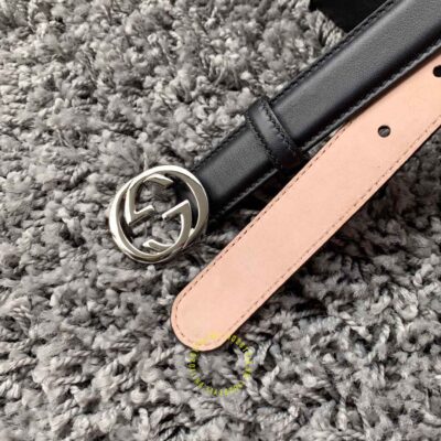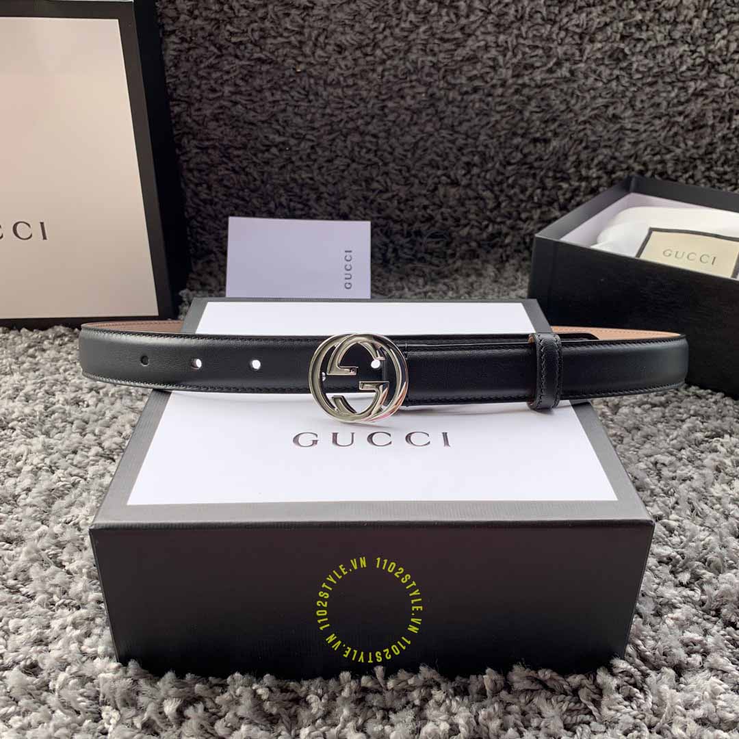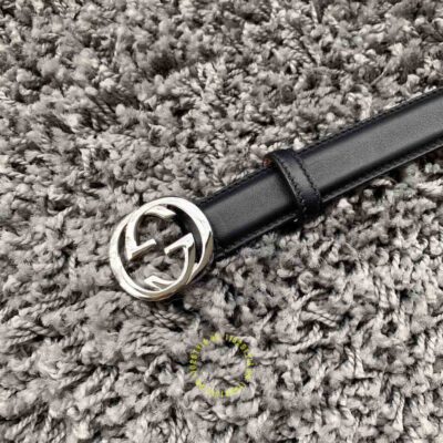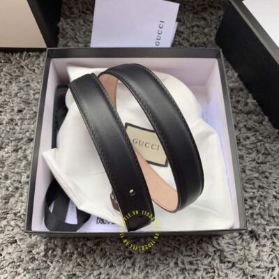 Hình sản phẩm thắt lưng nữ Gucci hàng hiệu khóa bấm ghi dây da đen trơn: