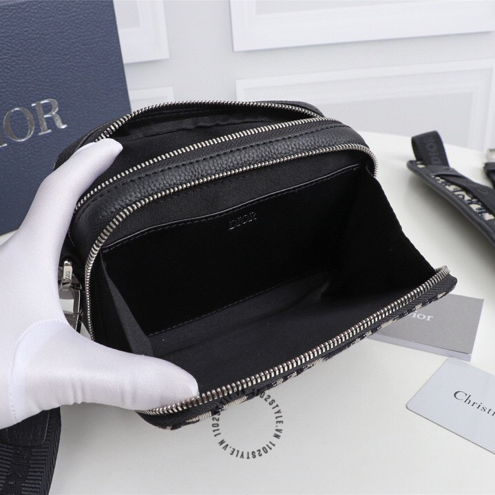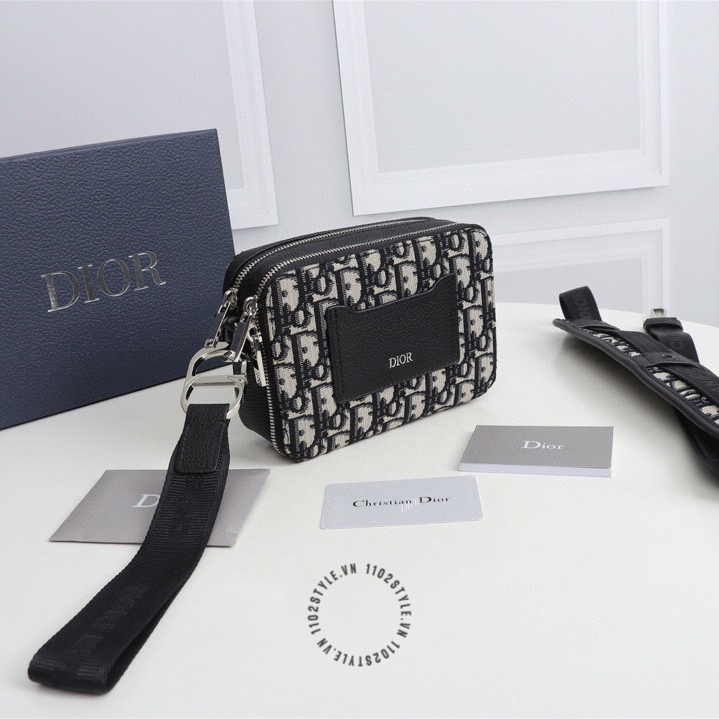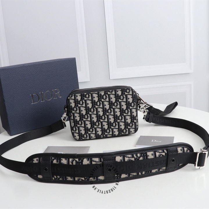 Ảnh chi tiết túi đeo chéo Dior nữ hoạ tiết phối da thời trang hàng hiệu cao cấp: