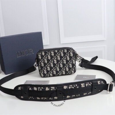 Ảnh chi tiết túi đeo chéo Dior nữ hoạ tiết phối da thời trang hàng hiệu cao cấp: