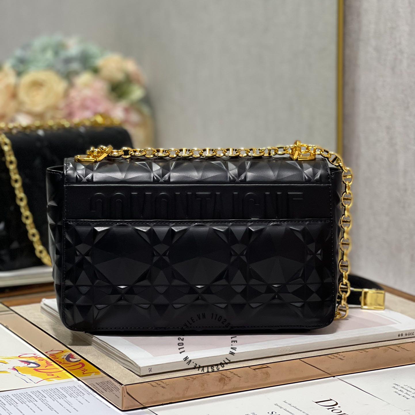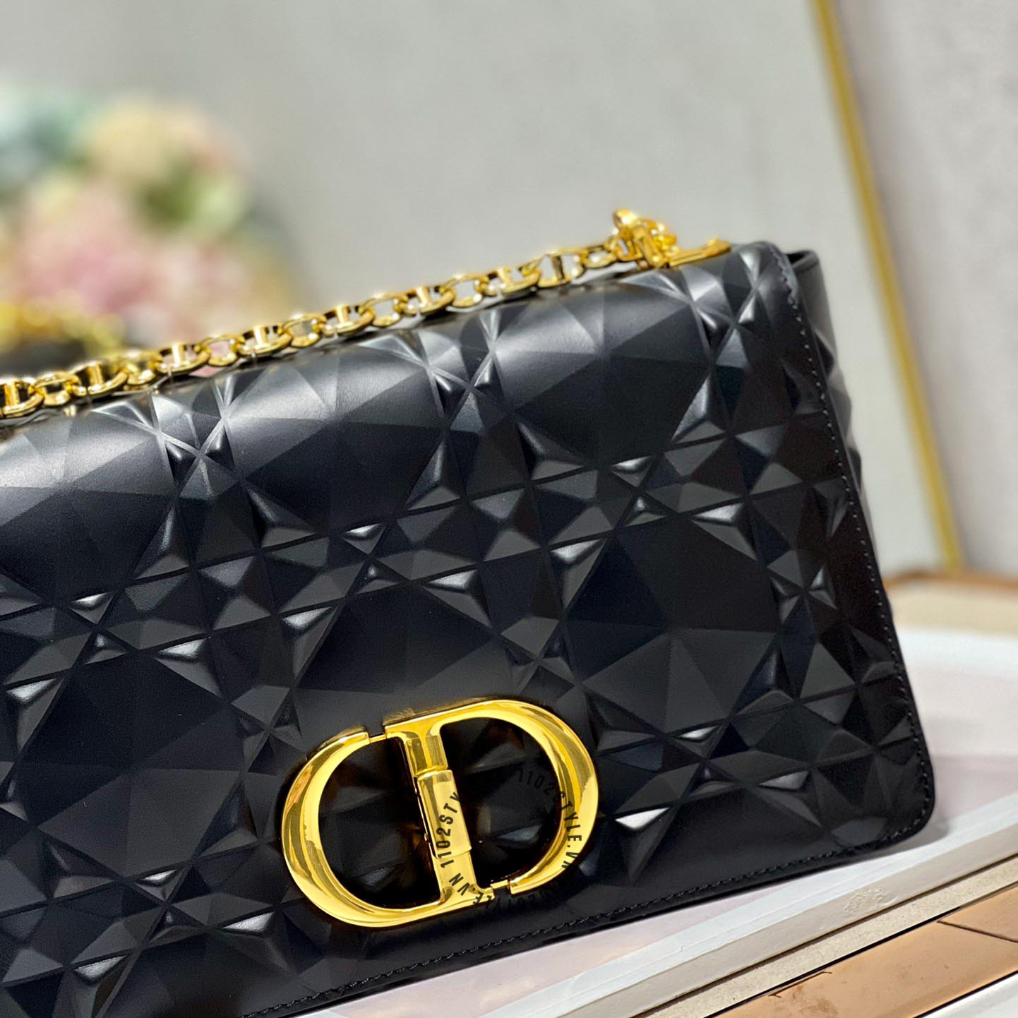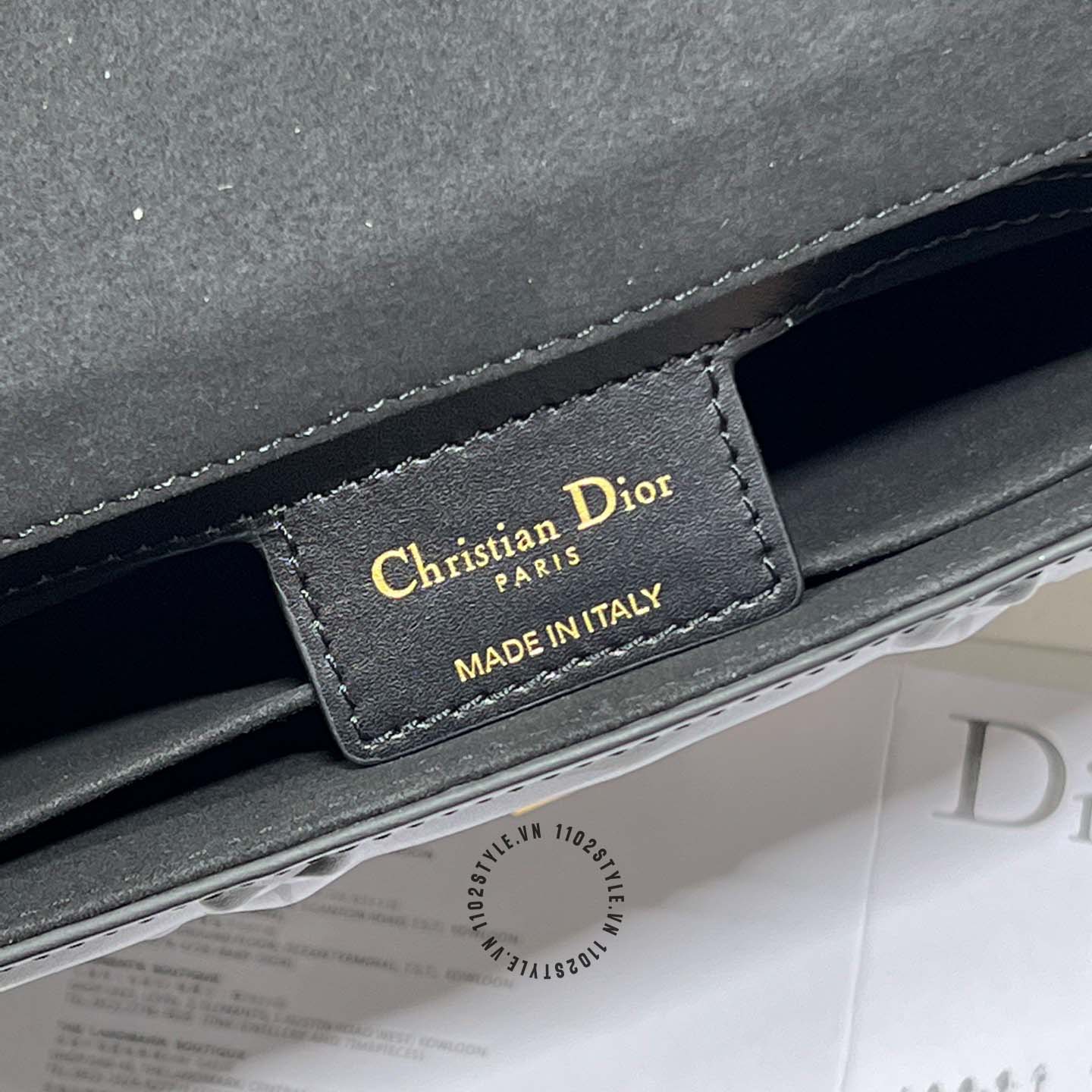 Ảnh chi tiết túi đeo chéo Dior nữ màu đen logo màu vàng phiên bản mới: