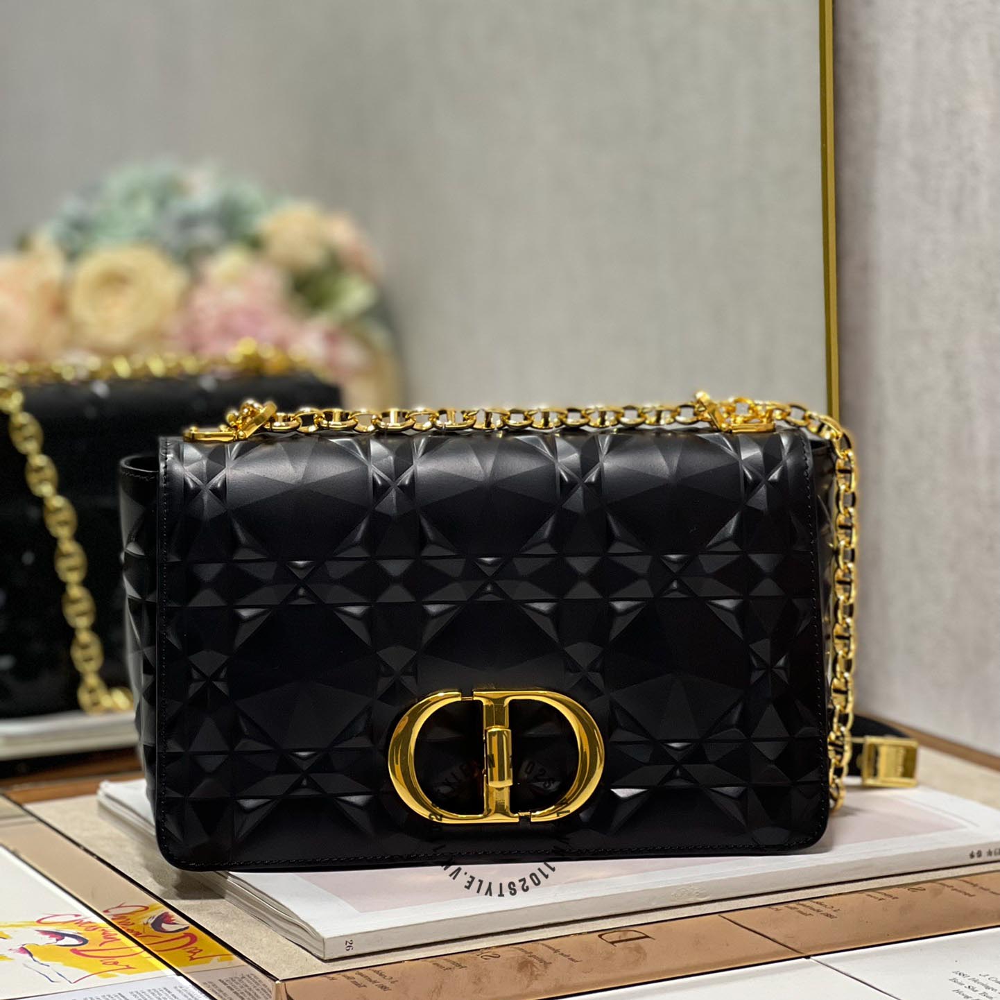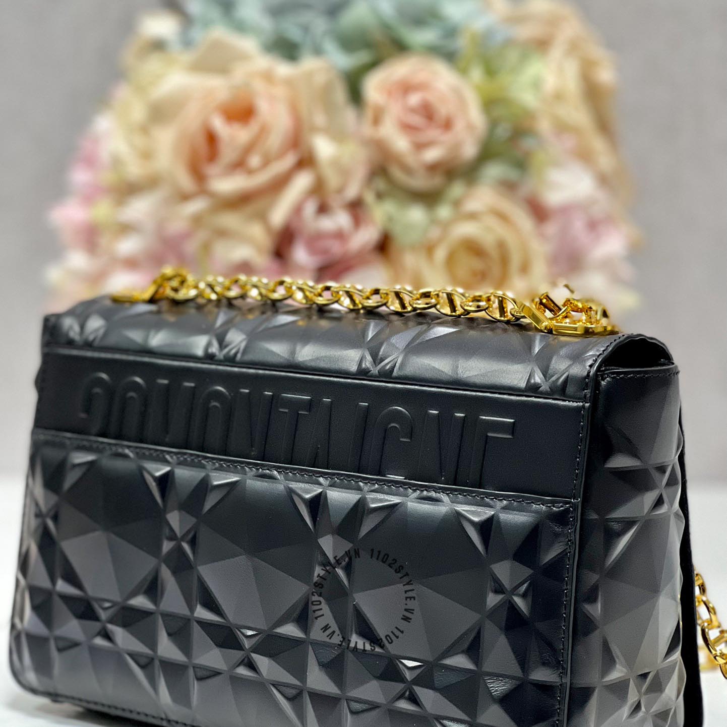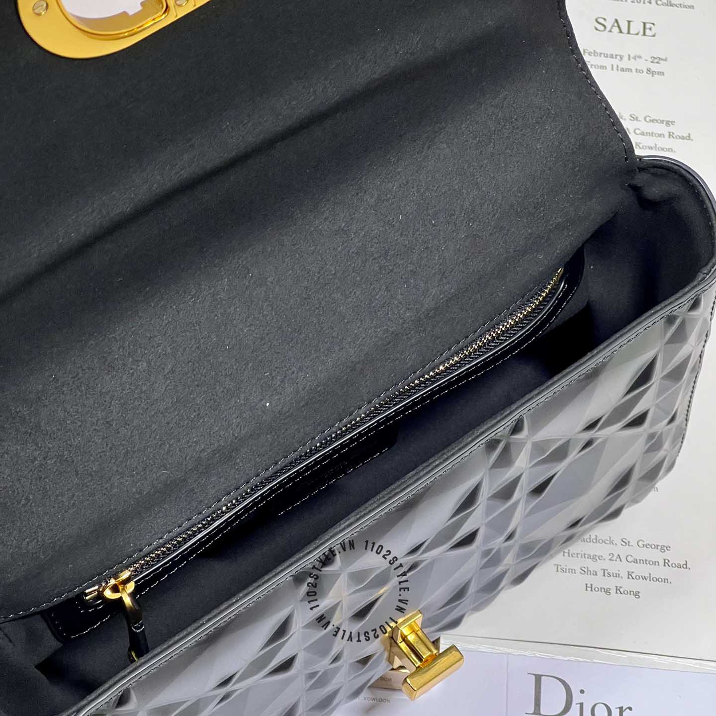 Ảnh chi tiết túi đeo chéo Dior nữ màu đen logo màu vàng phiên bản mới: