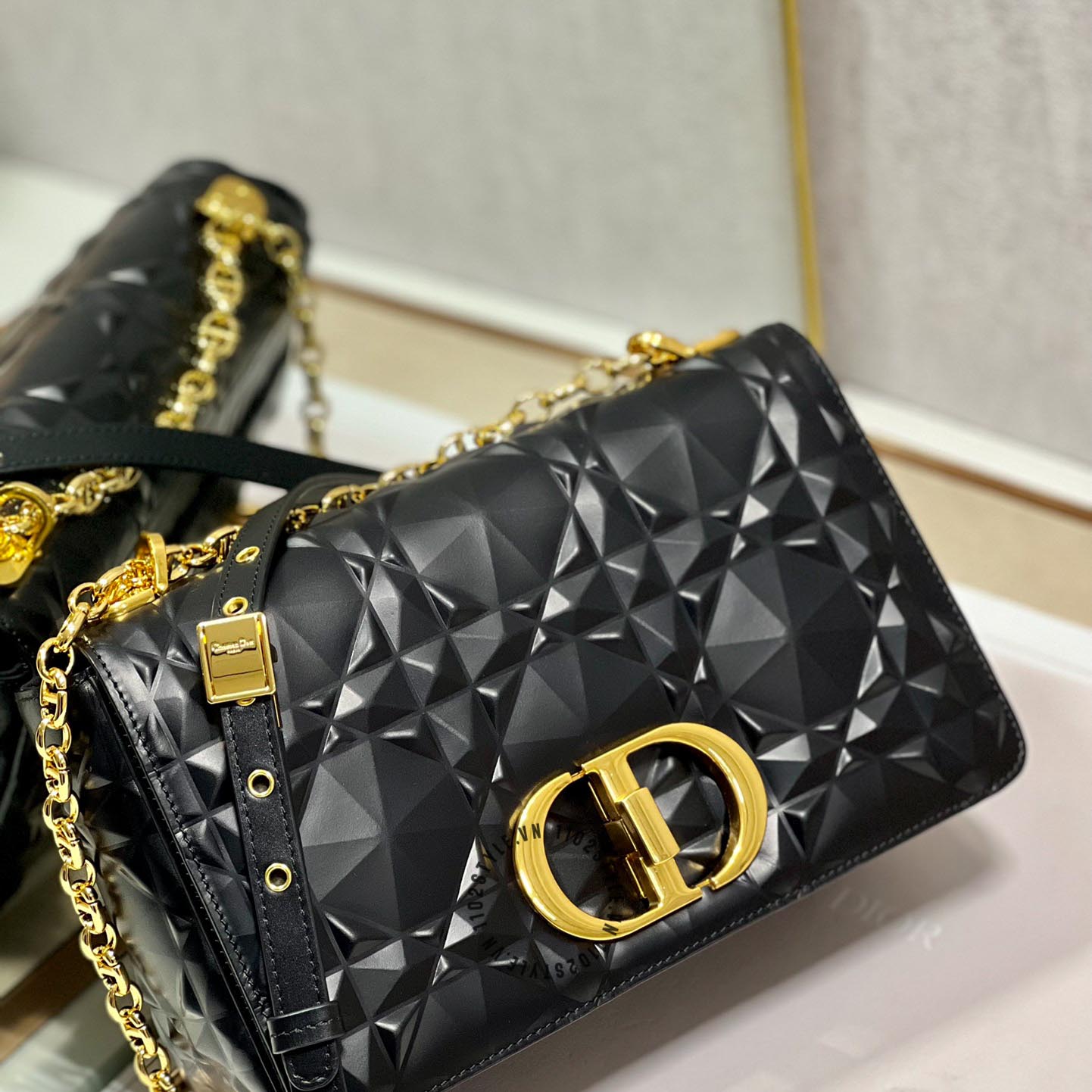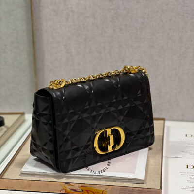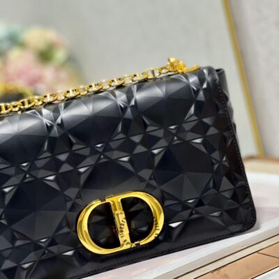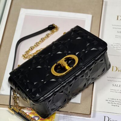 Ảnh chi tiết túi đeo chéo Dior nữ màu đen logo màu vàng phiên bản mới: