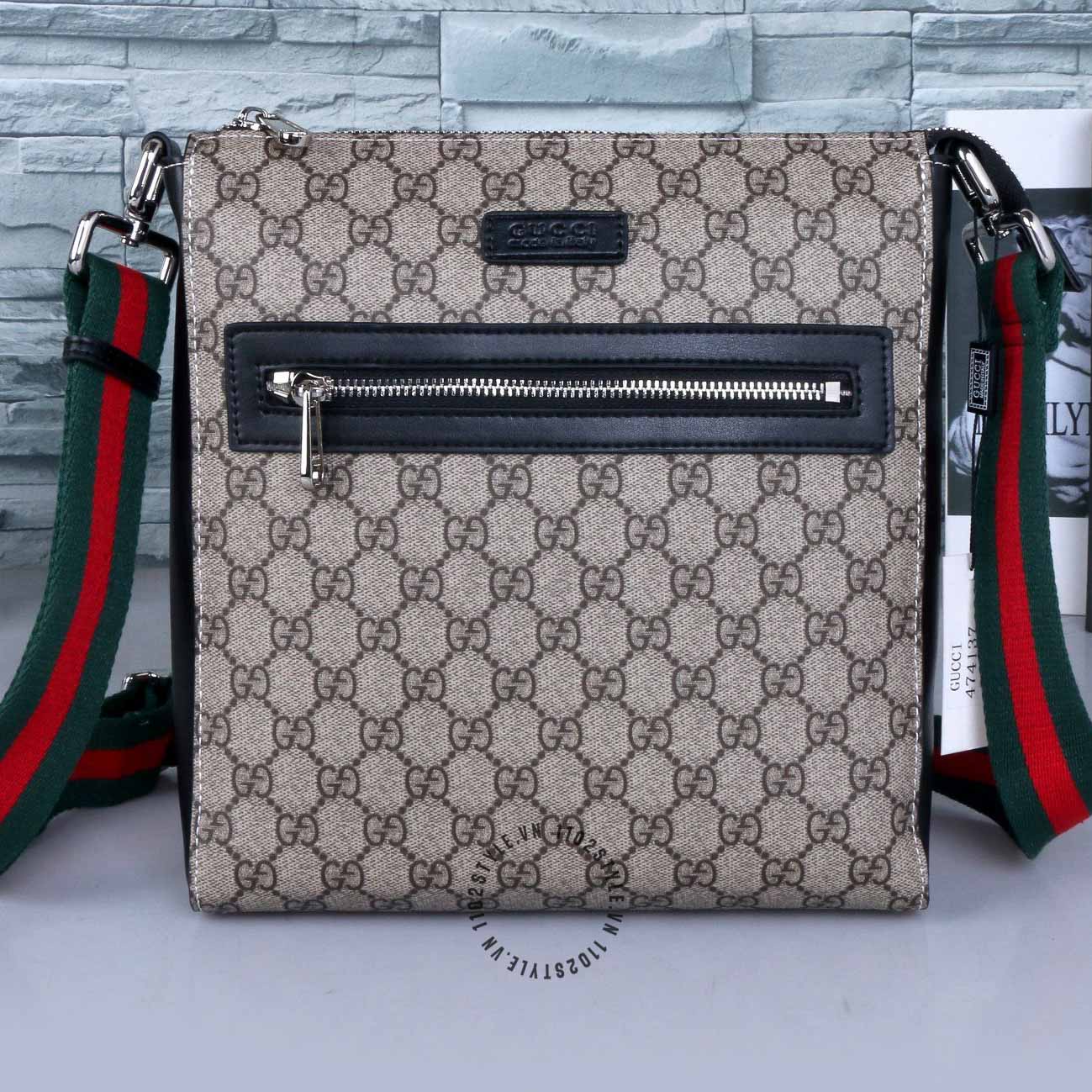 Hình ảnh chi tiết túi đeo chéo Gucci nam màu ghi rep loại 1 họa tiết cao cấp: