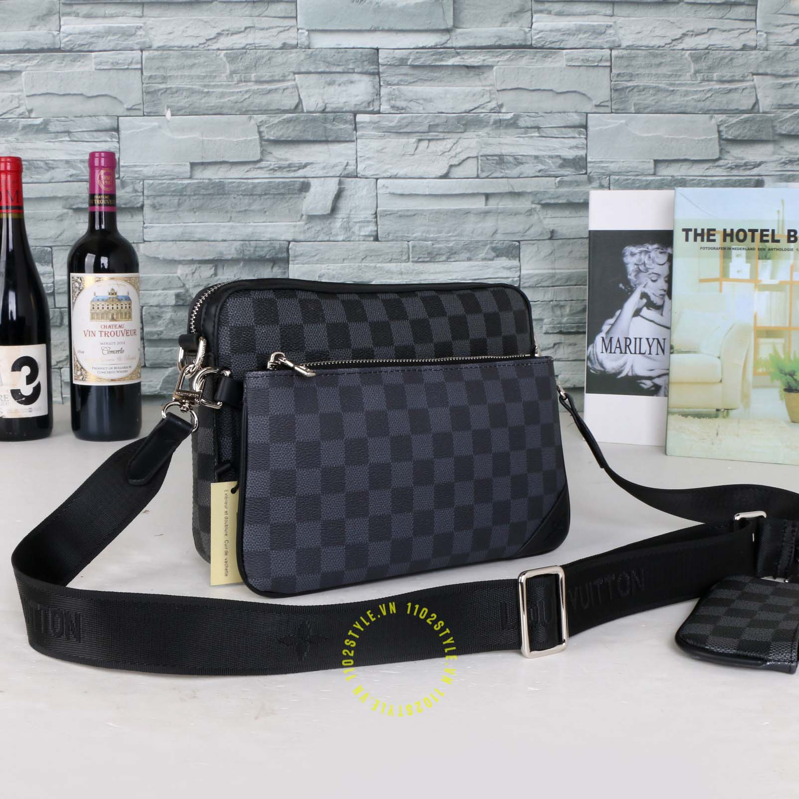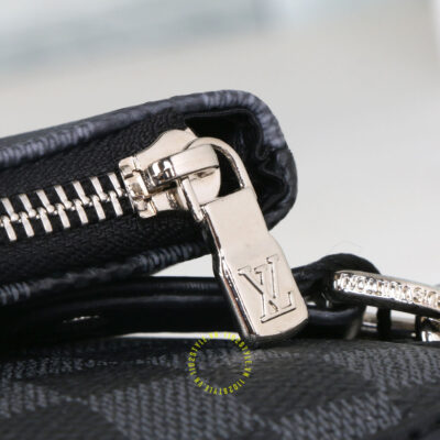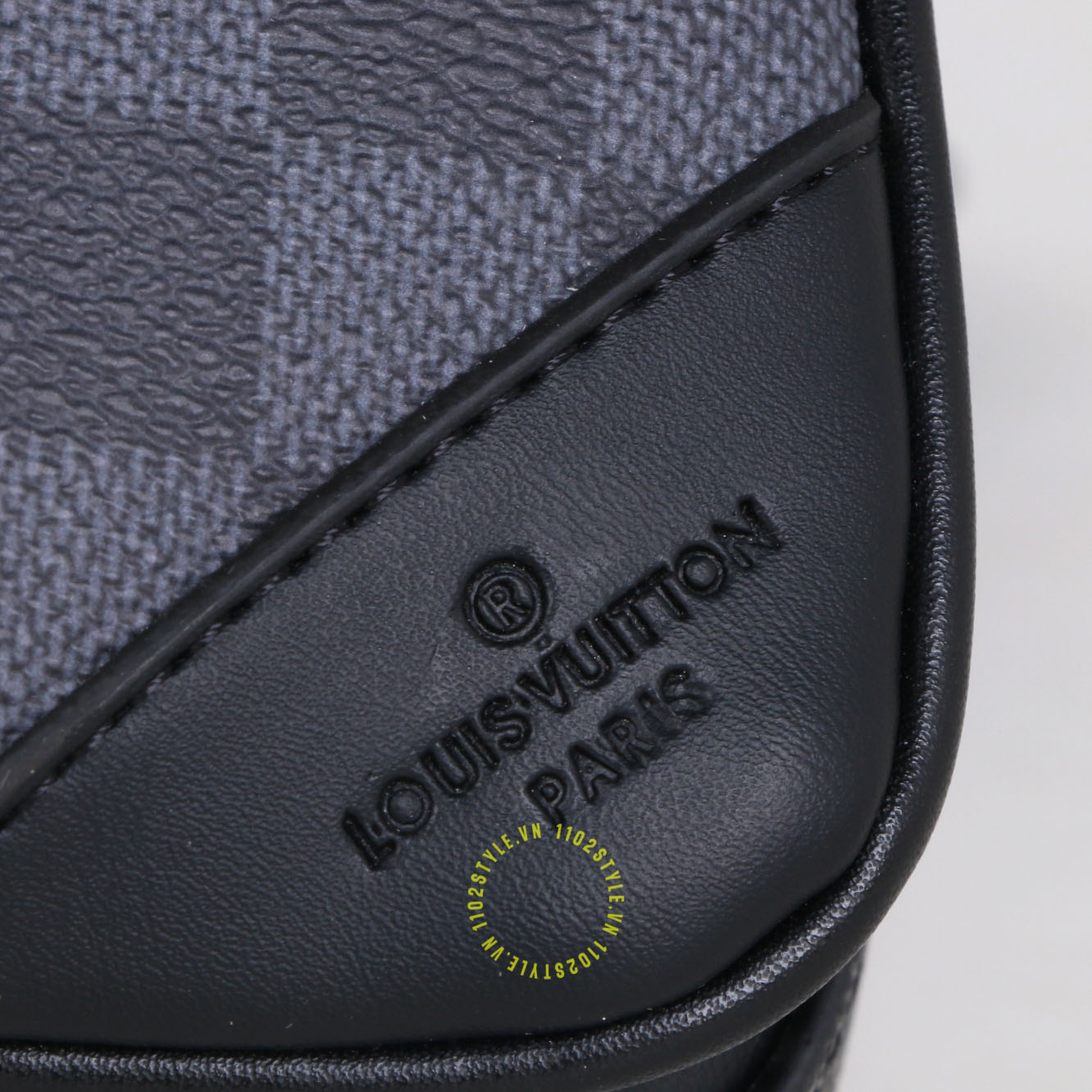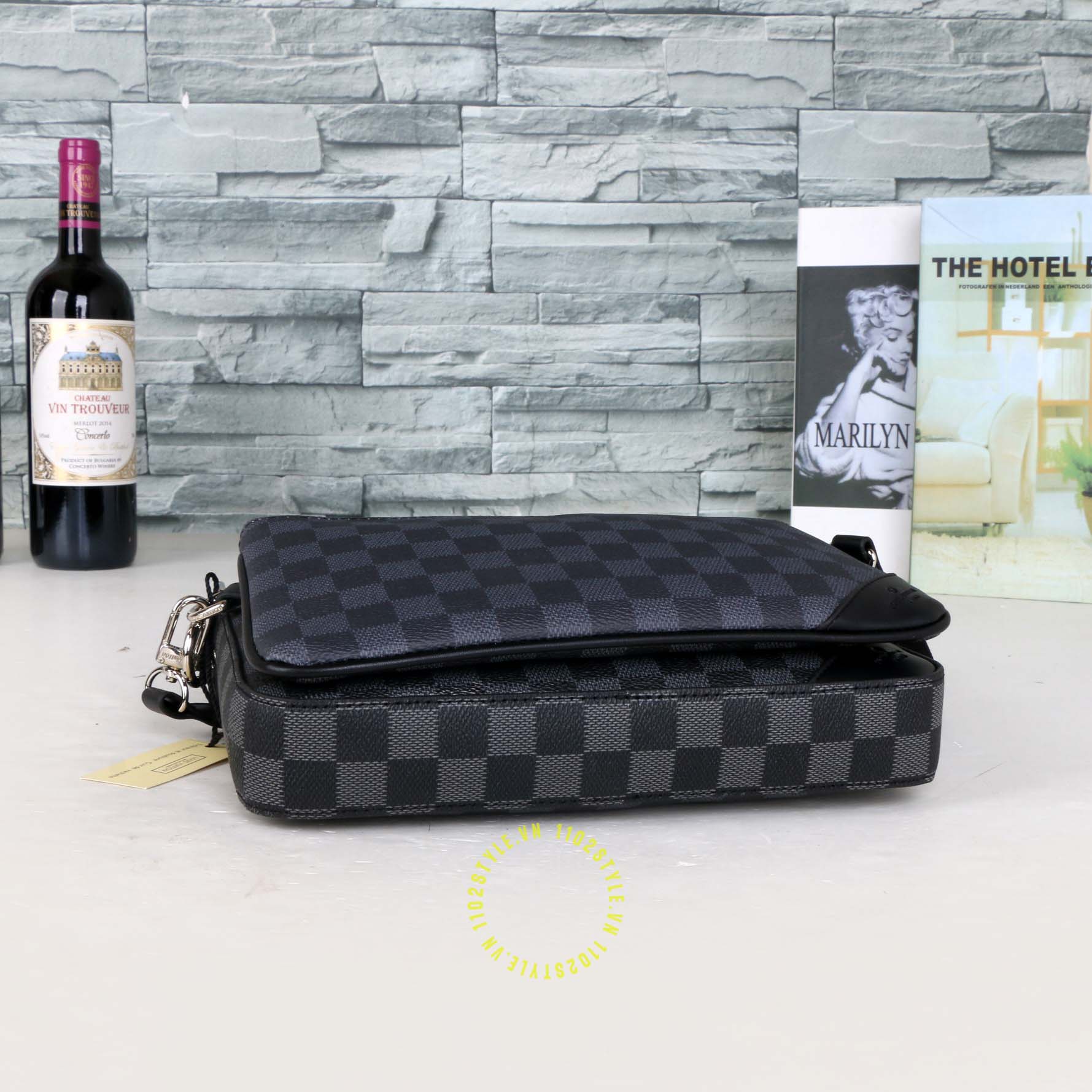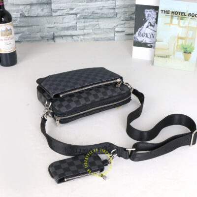 Hình ảnh chi tiết túi đeo chéo LV nam màu đen hoạ tiết caro hàng hiệu cao cấp: