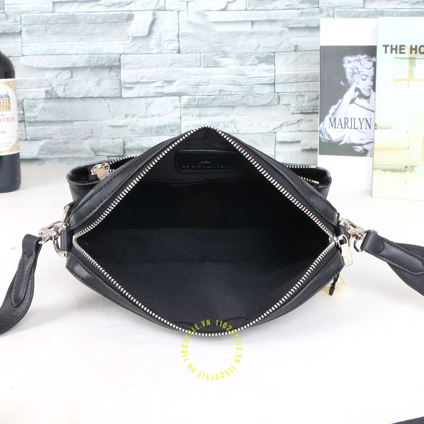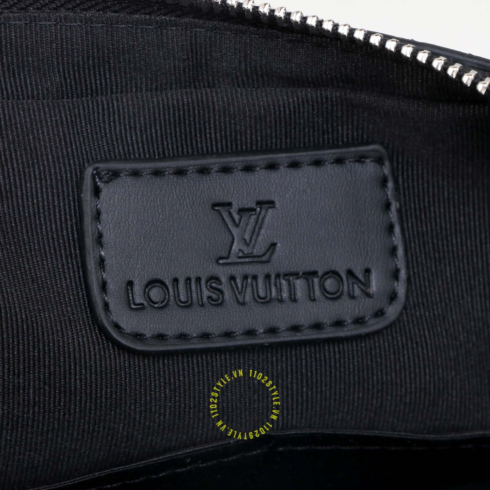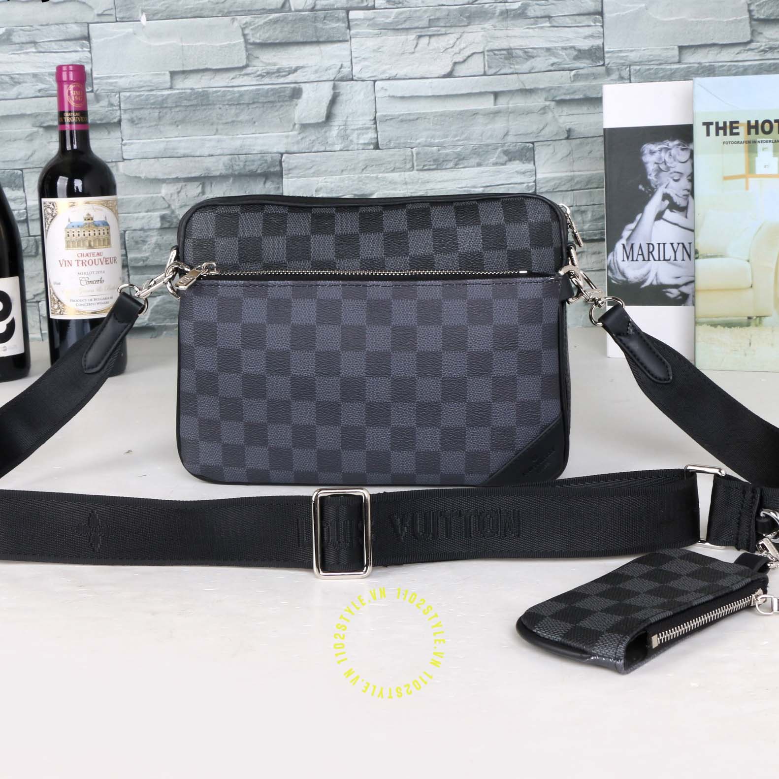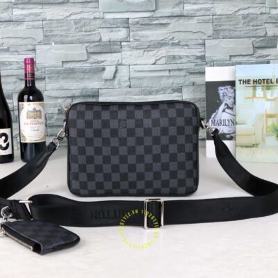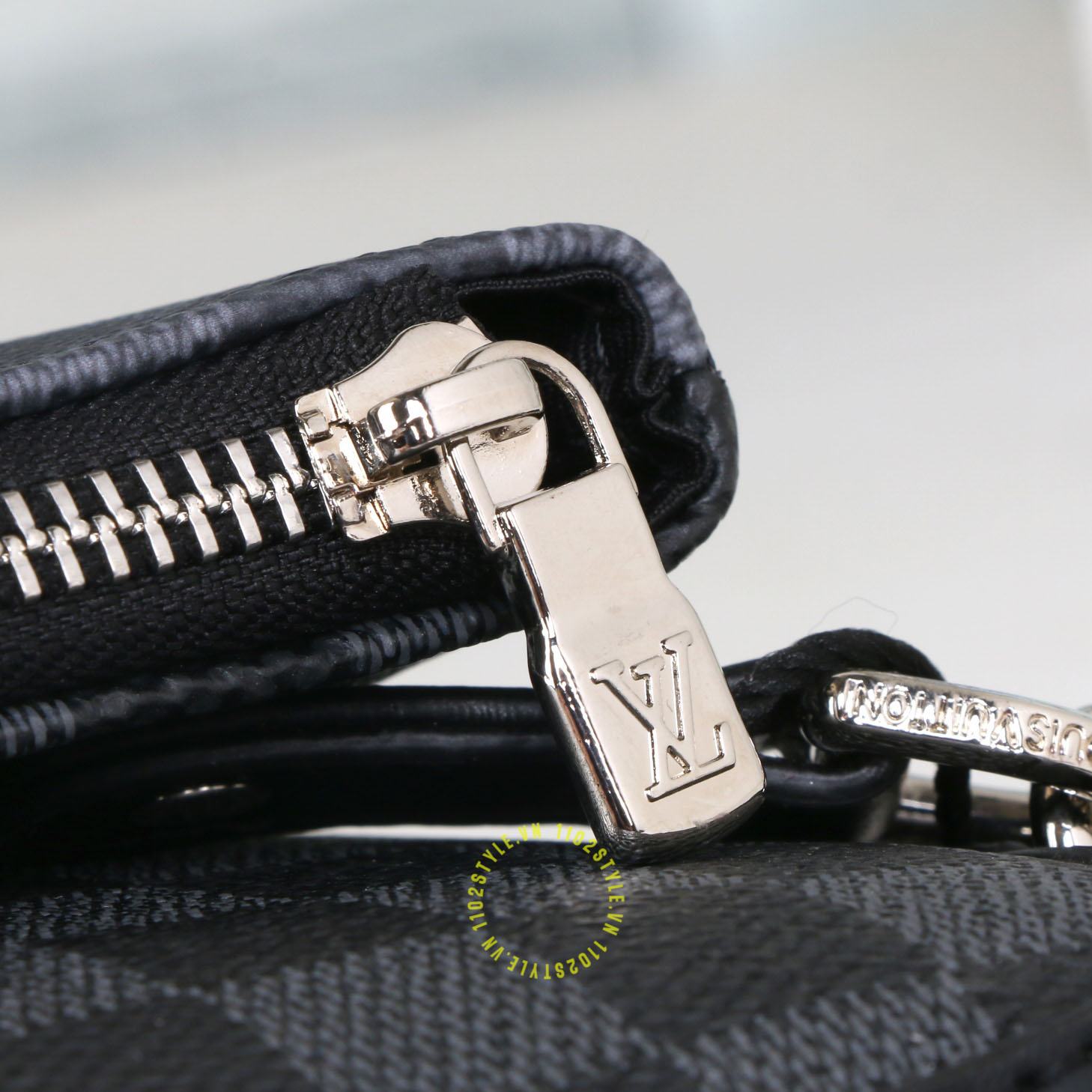 Hình ảnh chi tiết túi đeo chéo LV nam màu đen hoạ tiết caro hàng hiệu cao cấp: