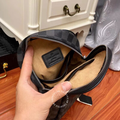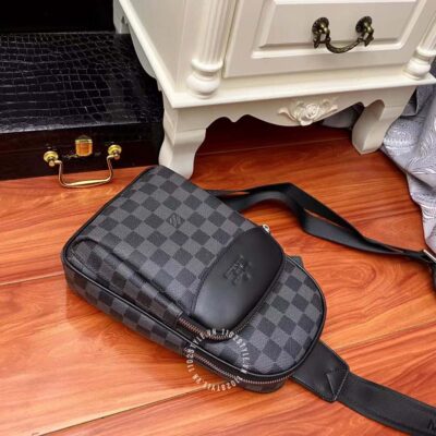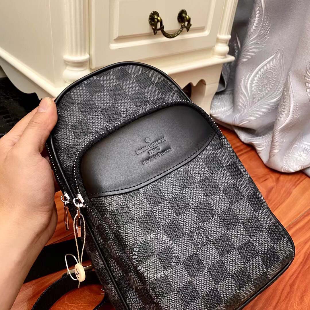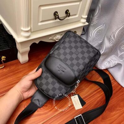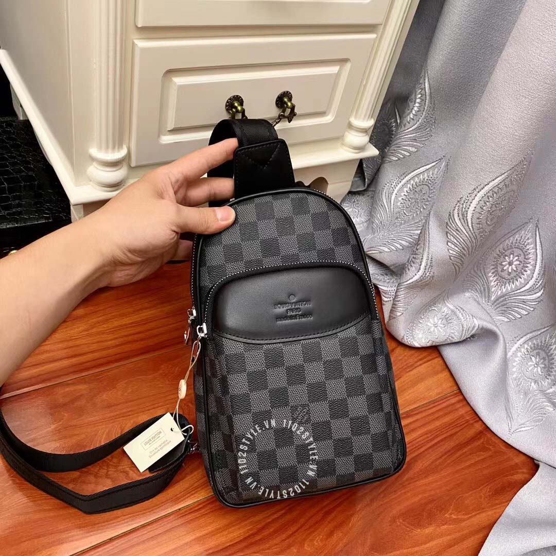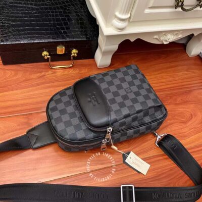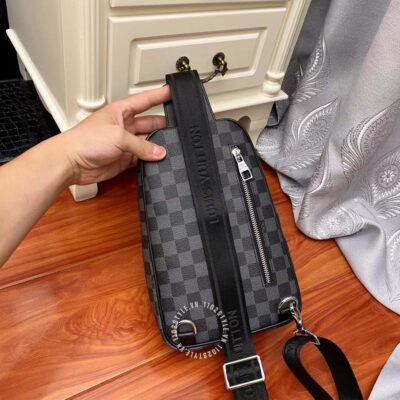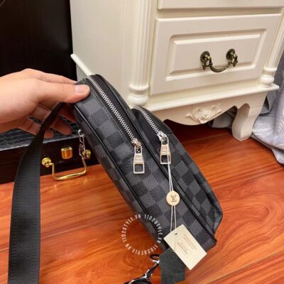 Hình ảnh chi tiết túi đeo chéo LV nam màu đen hoạ tiết caro rep 1:1 chính hãng: