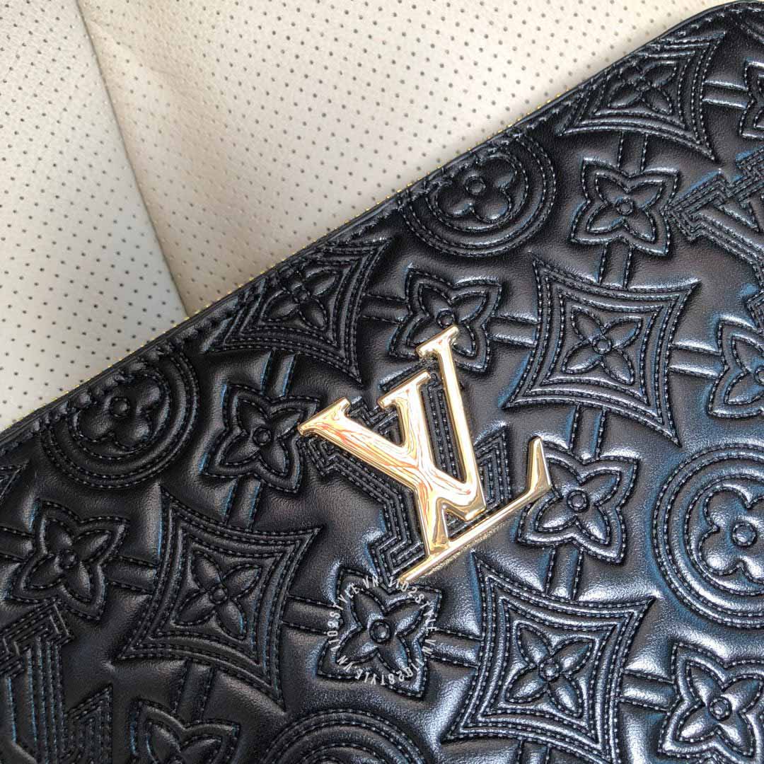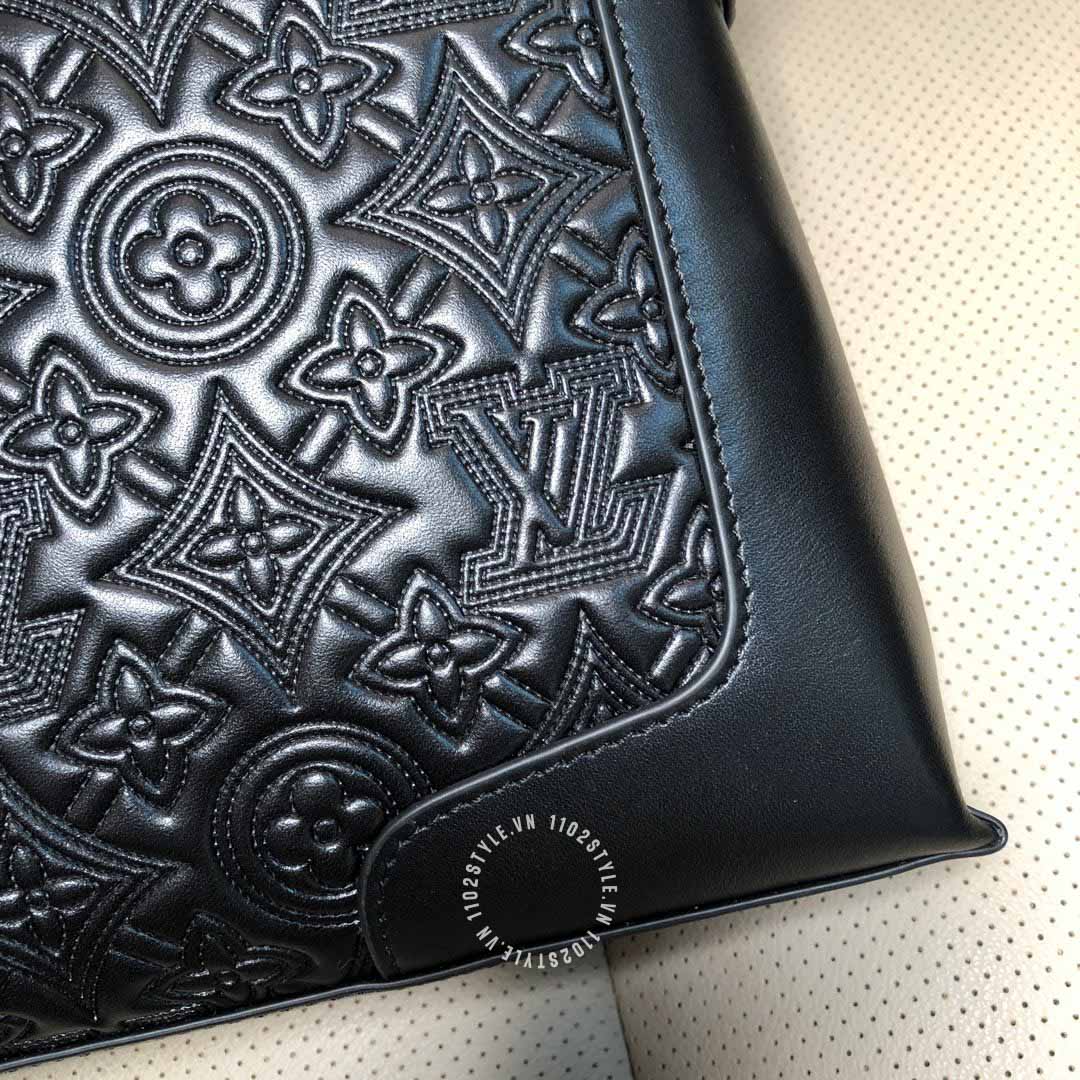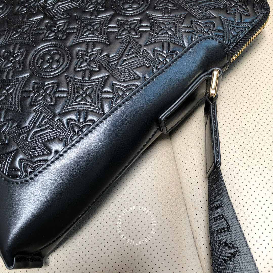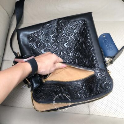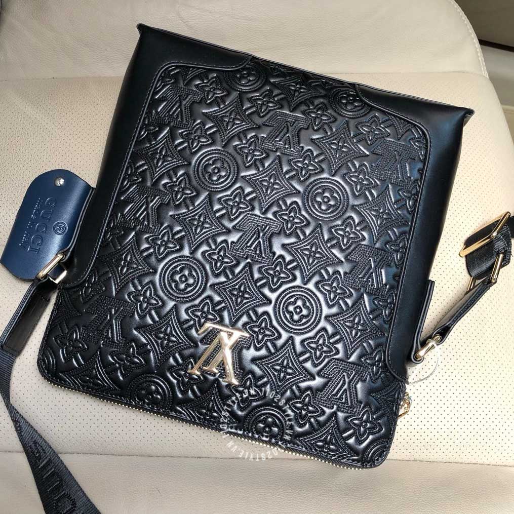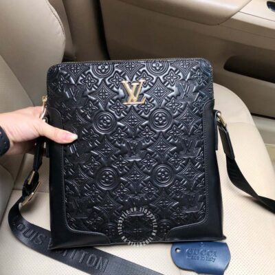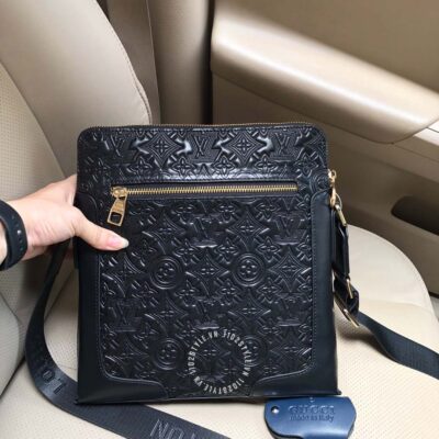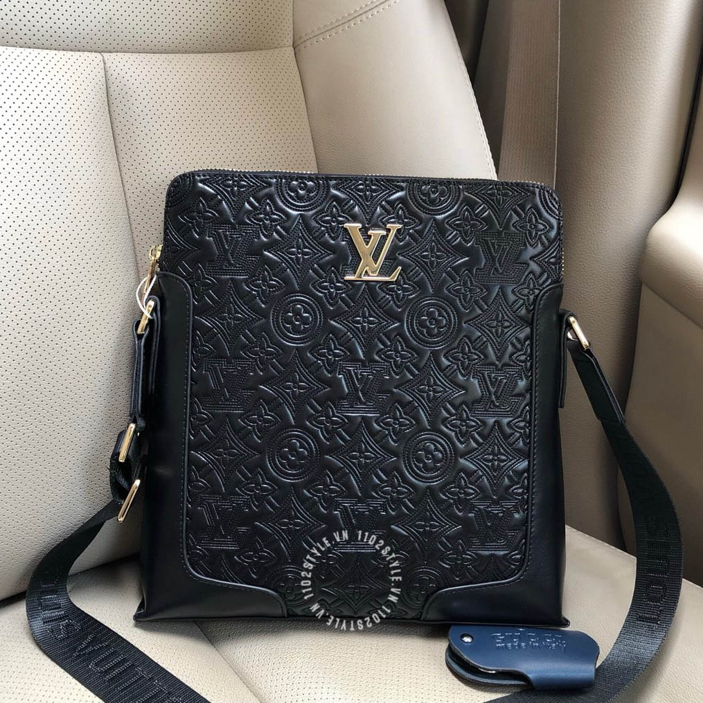 Hình ảnh chi tiết túi đeo chéo LV nam màu đen hoạ tiết monogram dập nổi fake 1: