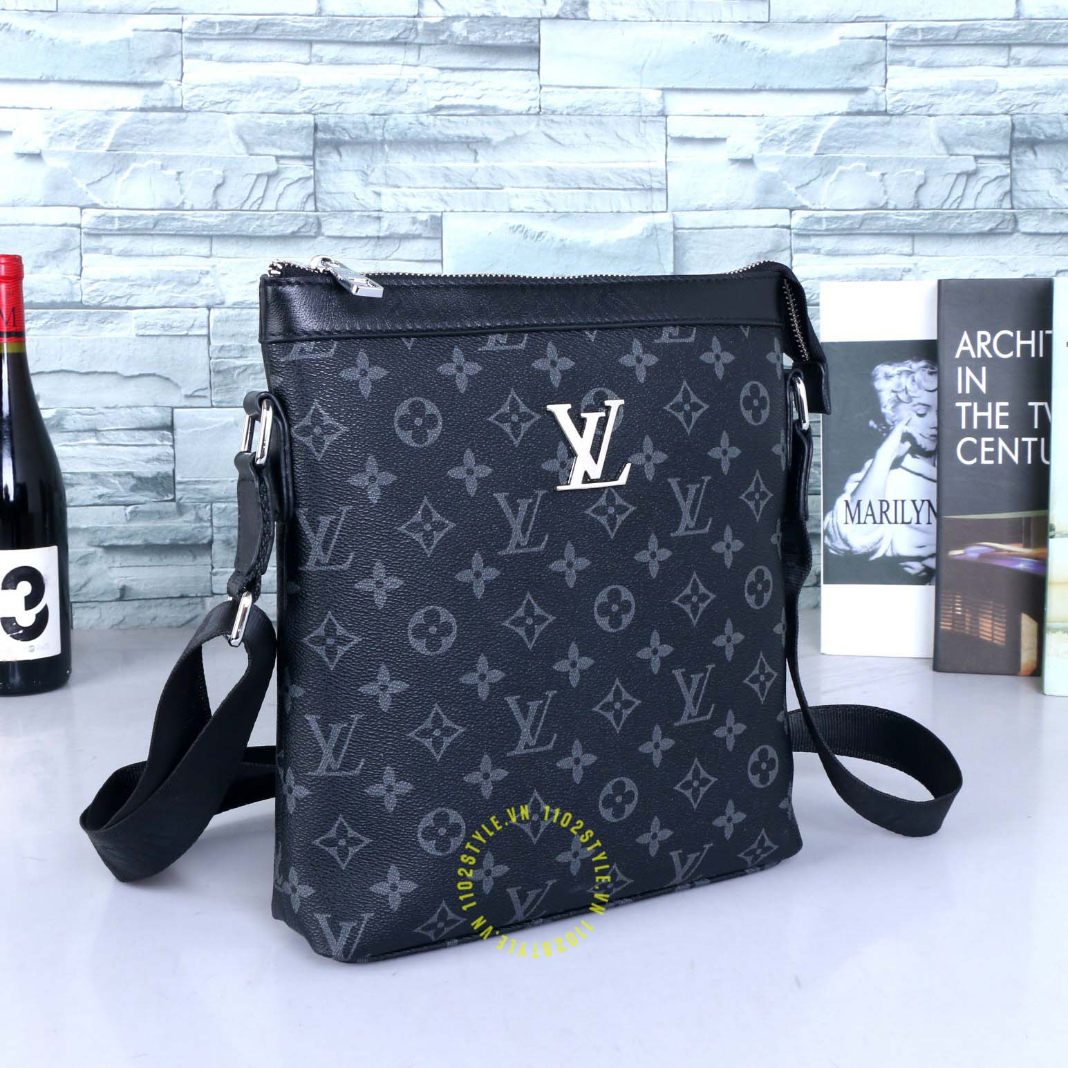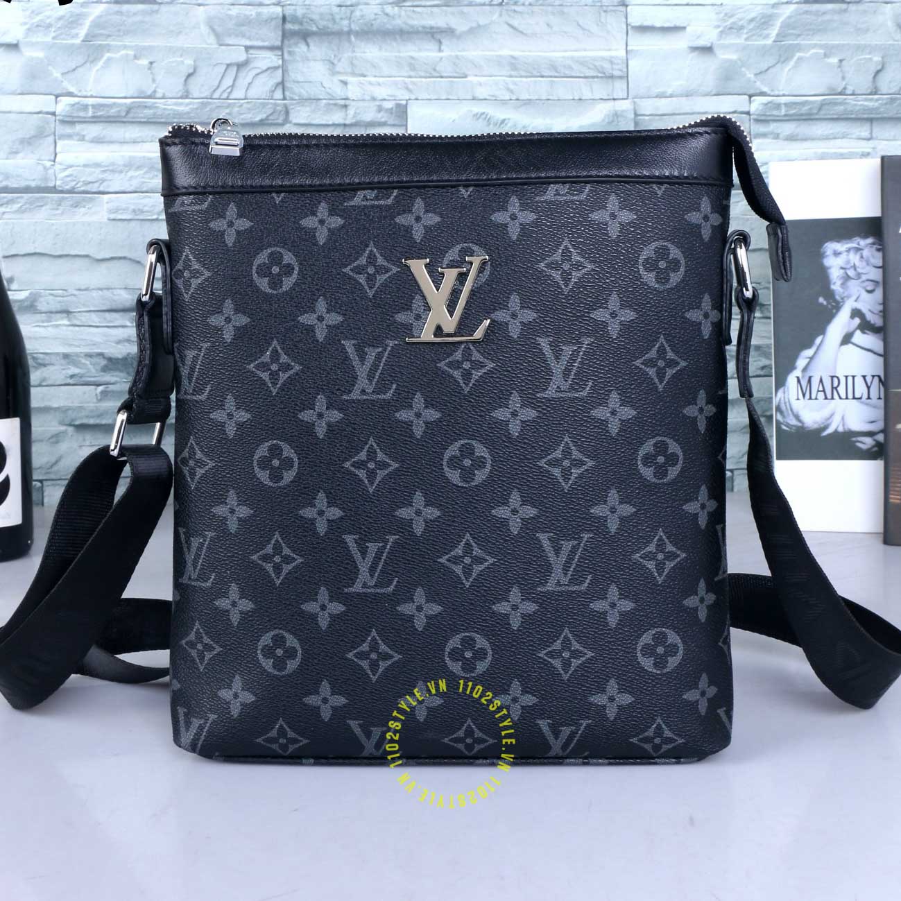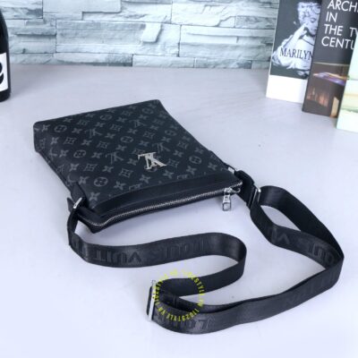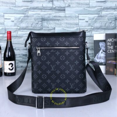 Hình ảnh chi tiết túi đeo chéo LV nam màu đen hoạ tiết monogram super fake: