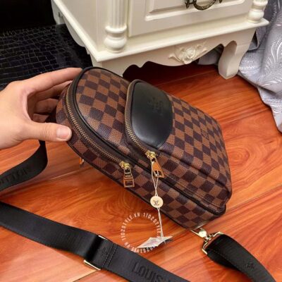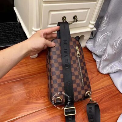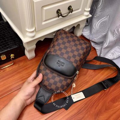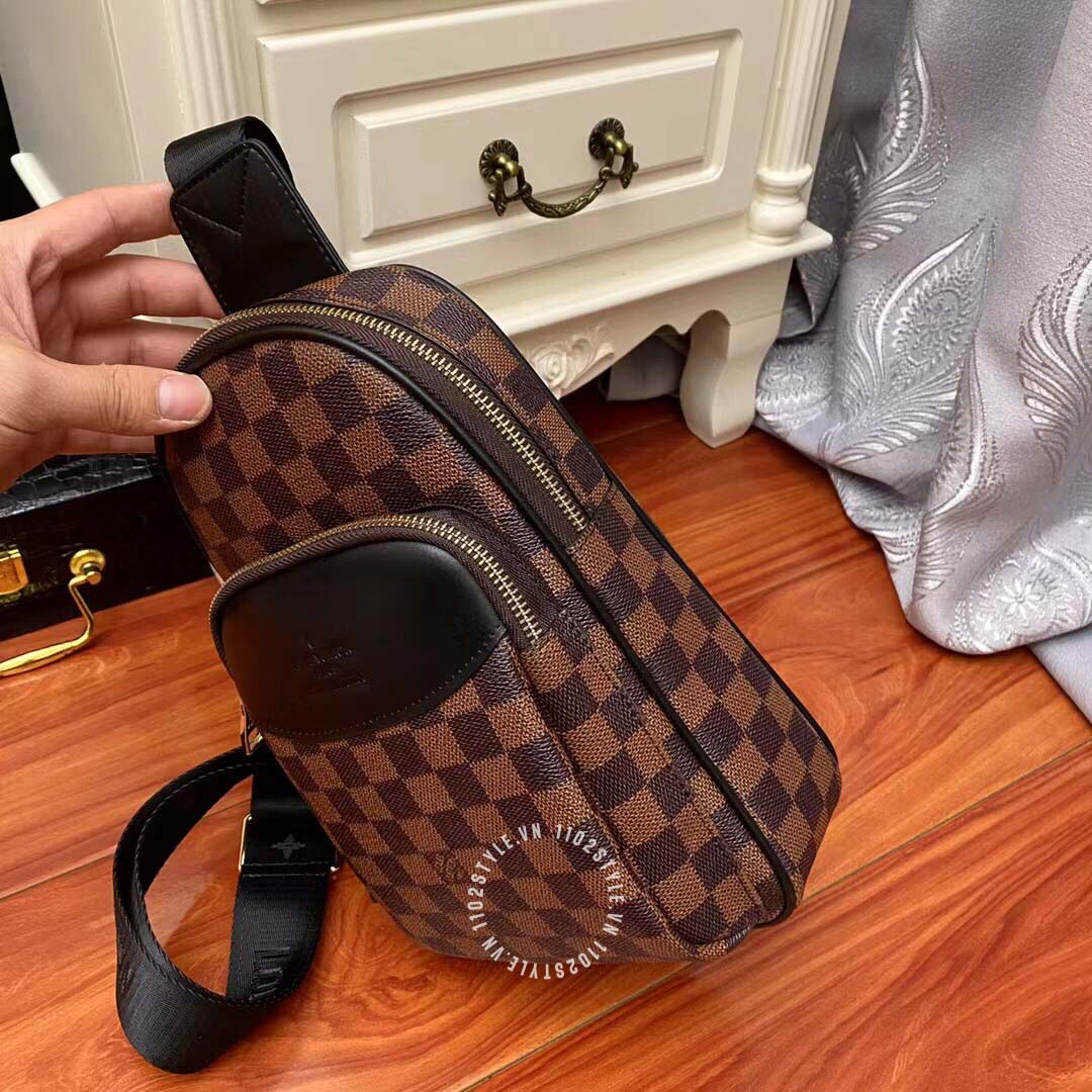 Hình ảnh chi tiết túi đeo chéo LV nam màu nâu hoạ tiết caro luxury chất lượng cao: