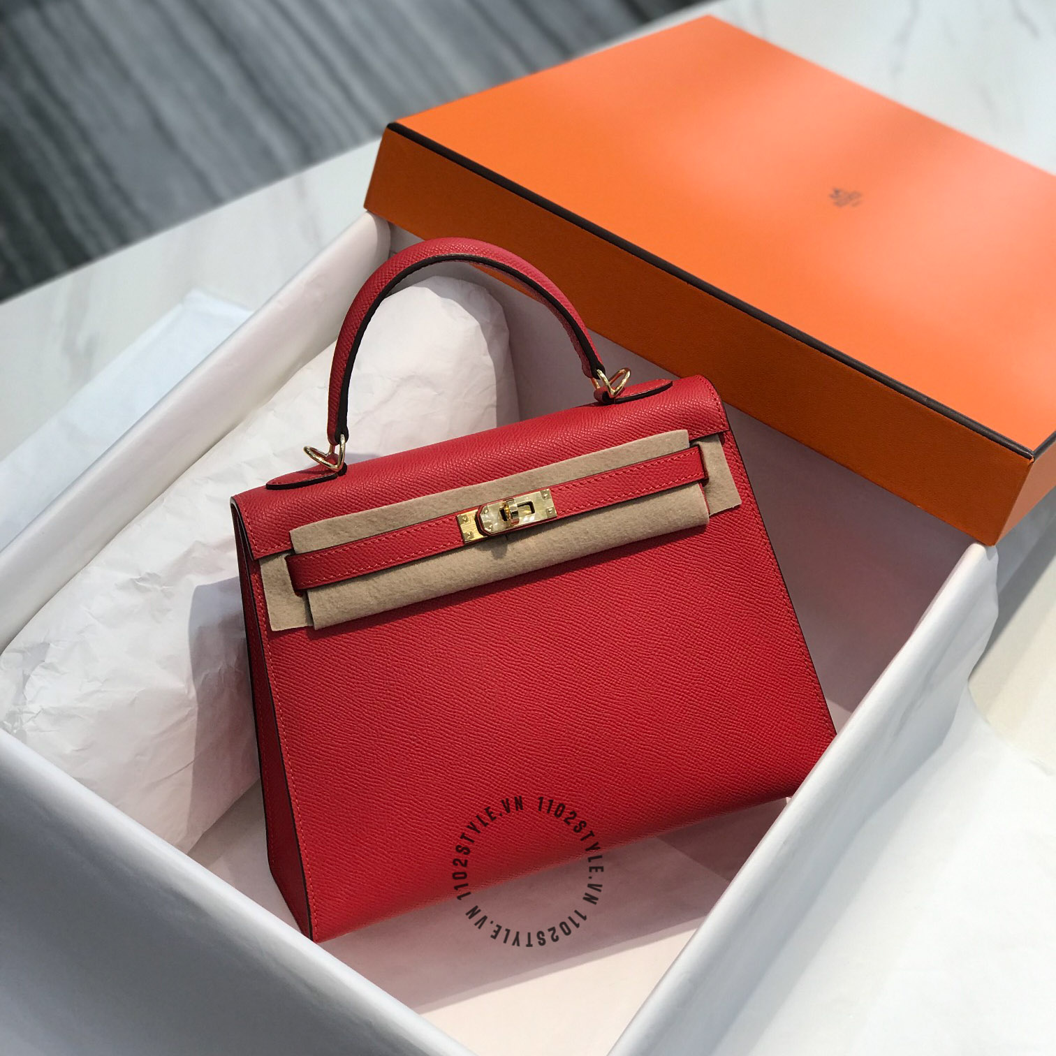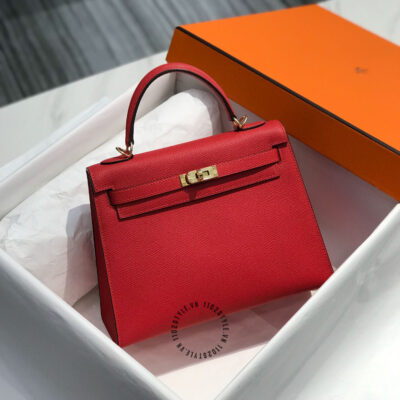 Hình ảnh chi tiết túi Hermes Kelly nữ màu đỏ nổi bật phong cách hàng hiệu luxury: