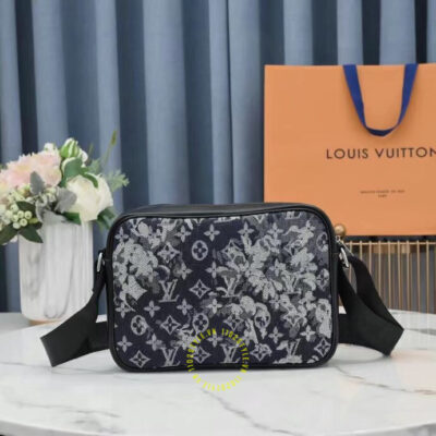 Hình ảnh chi tiết túi LV nam đeo chéo màu đen hoạ tiết monogram cao cấp luxury: