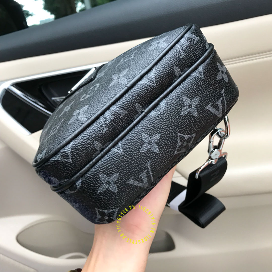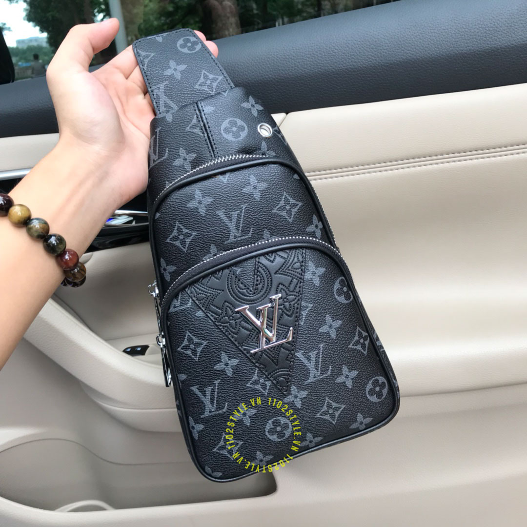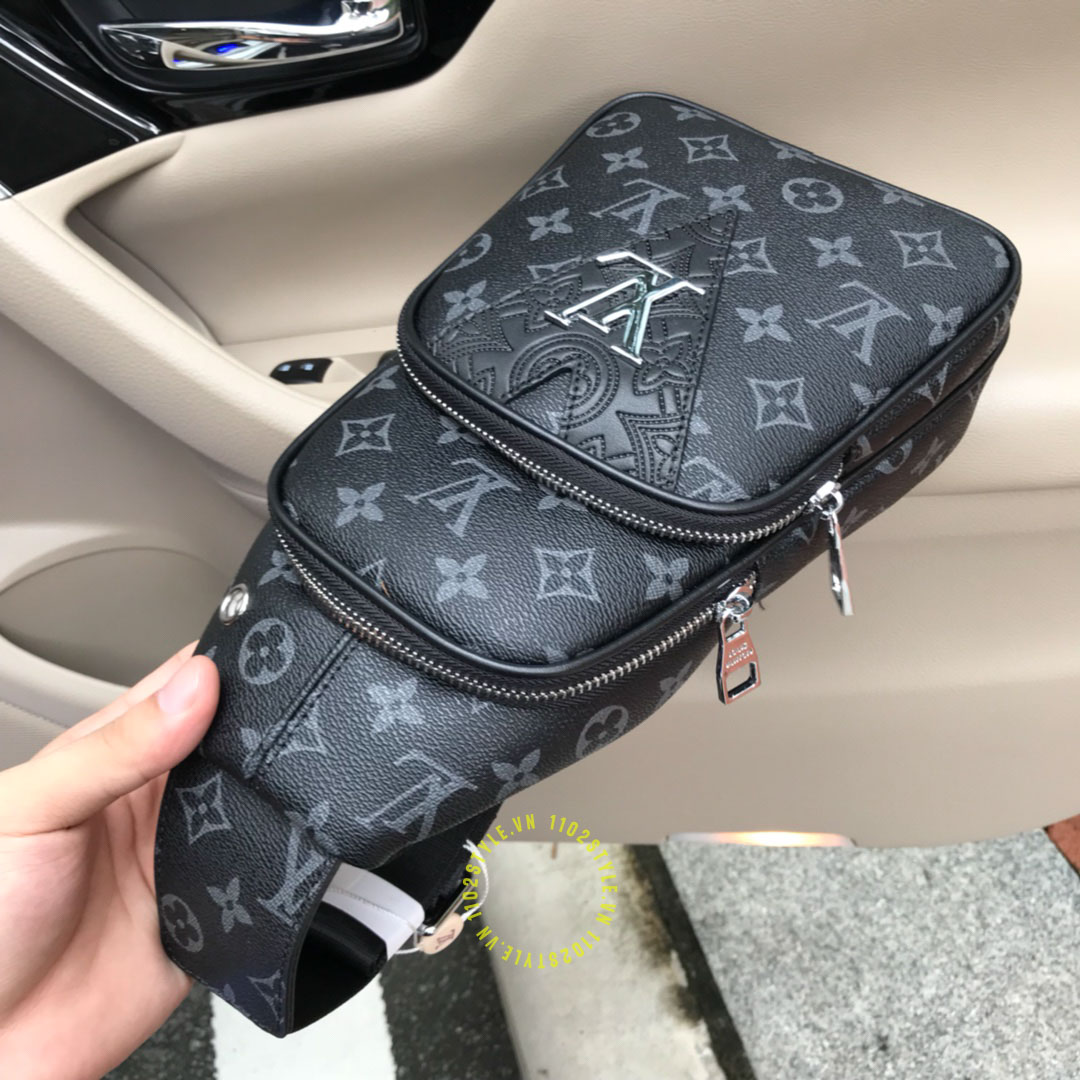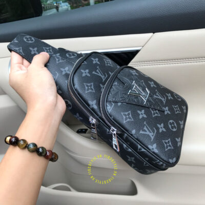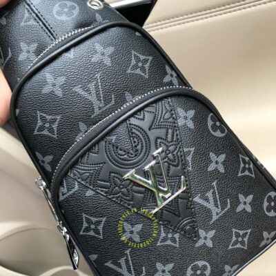 Hình ảnh chi tiết túi LV nam đeo chéo màu đen hoạ tiết monogram hàng hiệu: