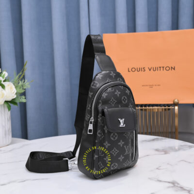 Hình ảnh chi tiết túi LV nam đeo chéo màu đen hoạ tiết monogram rep 1:1 giá tốt: