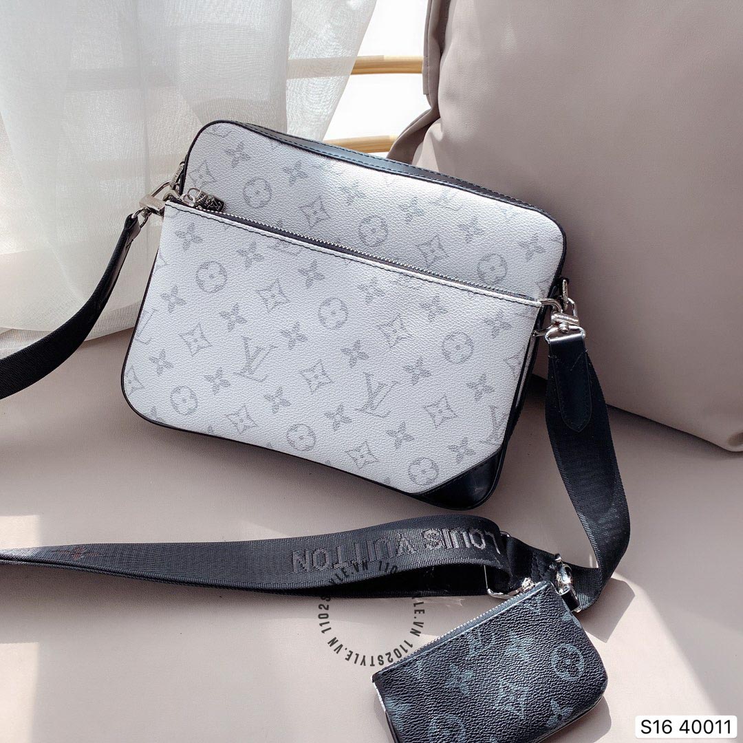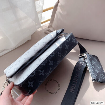 Hình ảnh chi tiết túi LV nam đeo chéo màu trắng hoạ tiết monogram xách tay luxury: