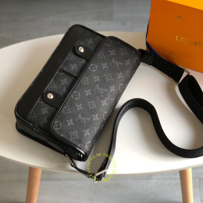 Hình ảnh chi tiết túi nam đeo chéo LV cao cấp màu đen hoạ tiết monogram luxury:
