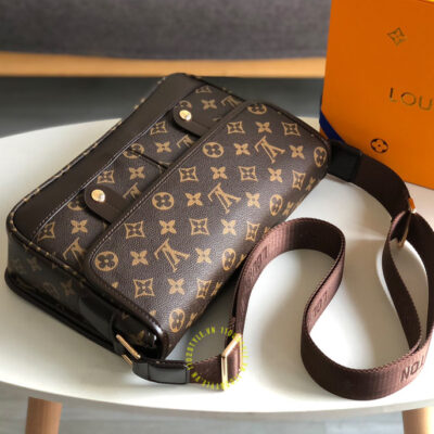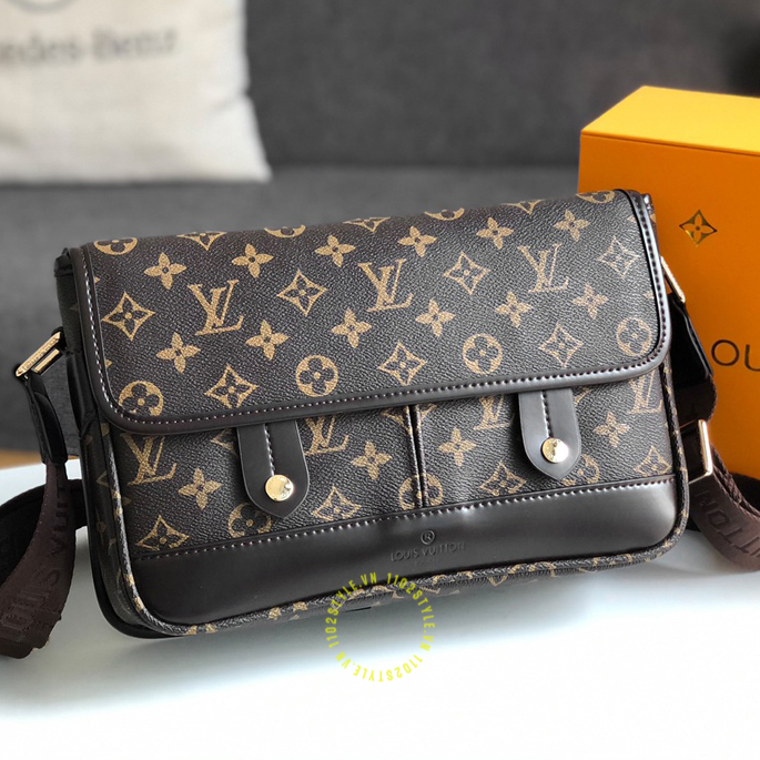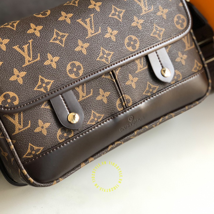 Hình ảnh chi tiết túi nam đeo chéo LV xách tay màu nâu hoạ tiết monogram cao cấp: