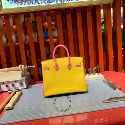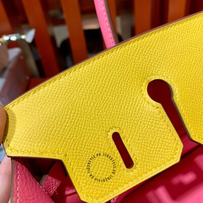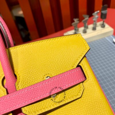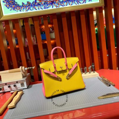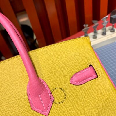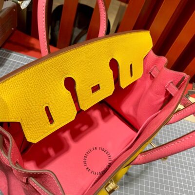 Hình ảnh chi tiết túi nữ Hermes Birkin xách tay phối màu vàng hồng cá tính luxury: