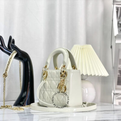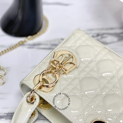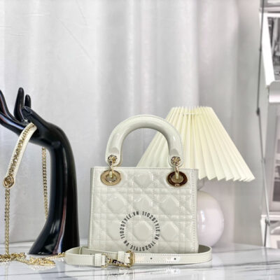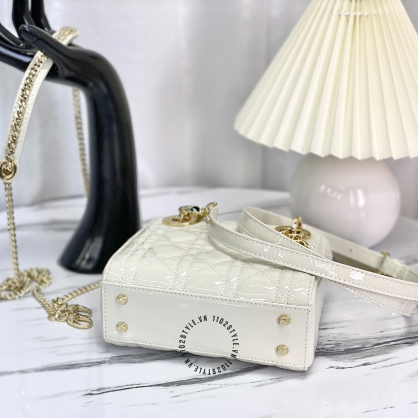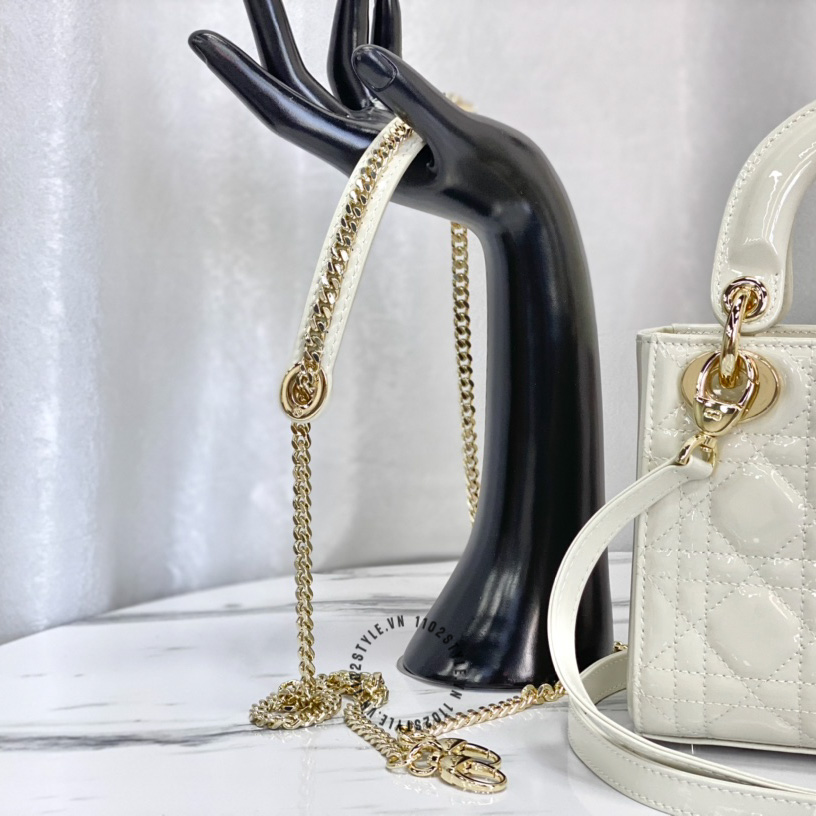 Hình ảnh chi tiết túi xách Dior nữ màu trắng da bóng thời trang hàng hiệu cao cấp: