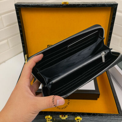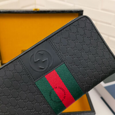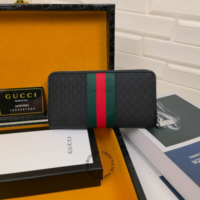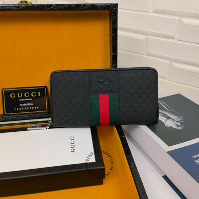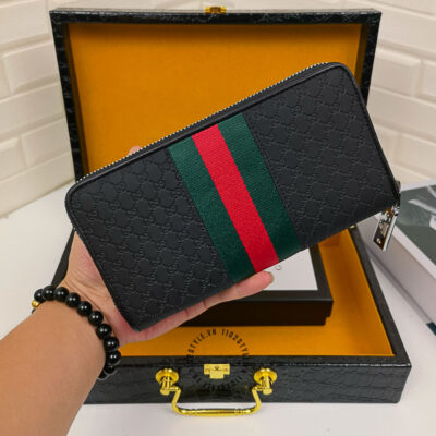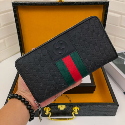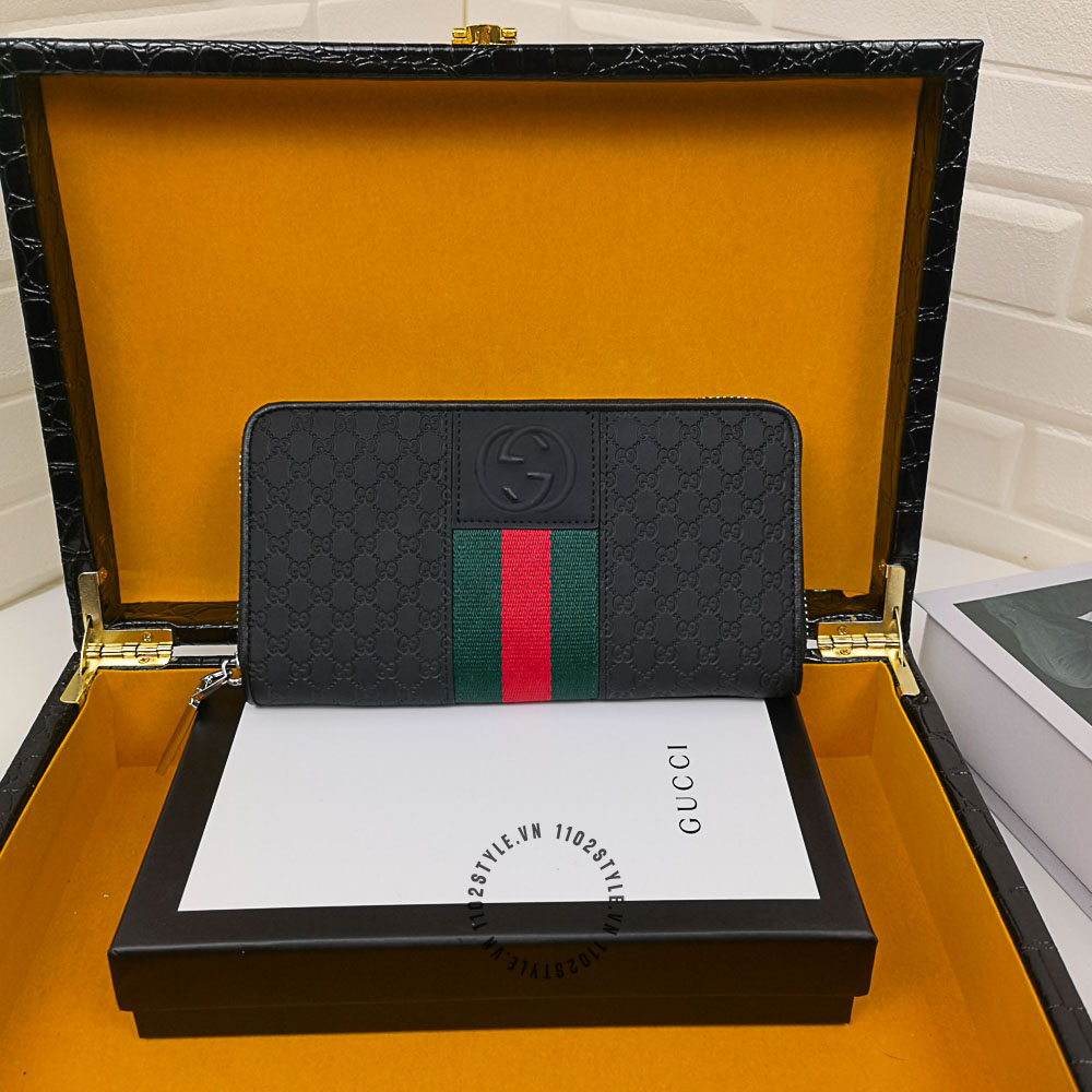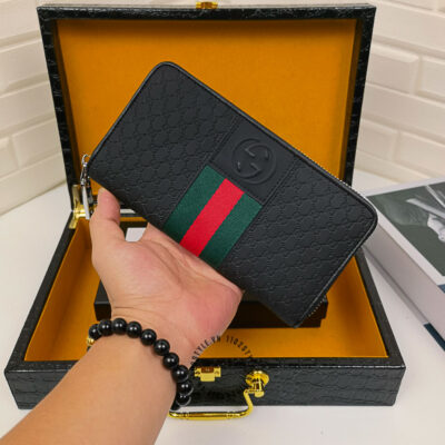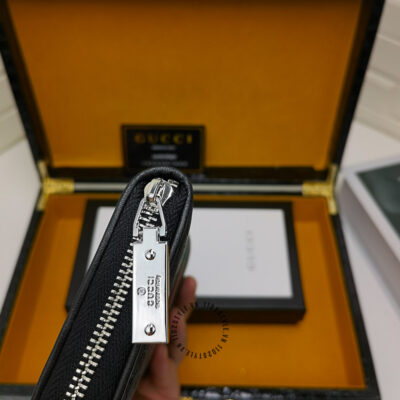 Hình ảnh chi tiết ví da cầm tay Gucci nam màu đen super Fake 1:1 chính hãng: