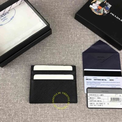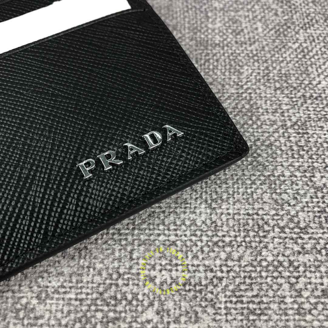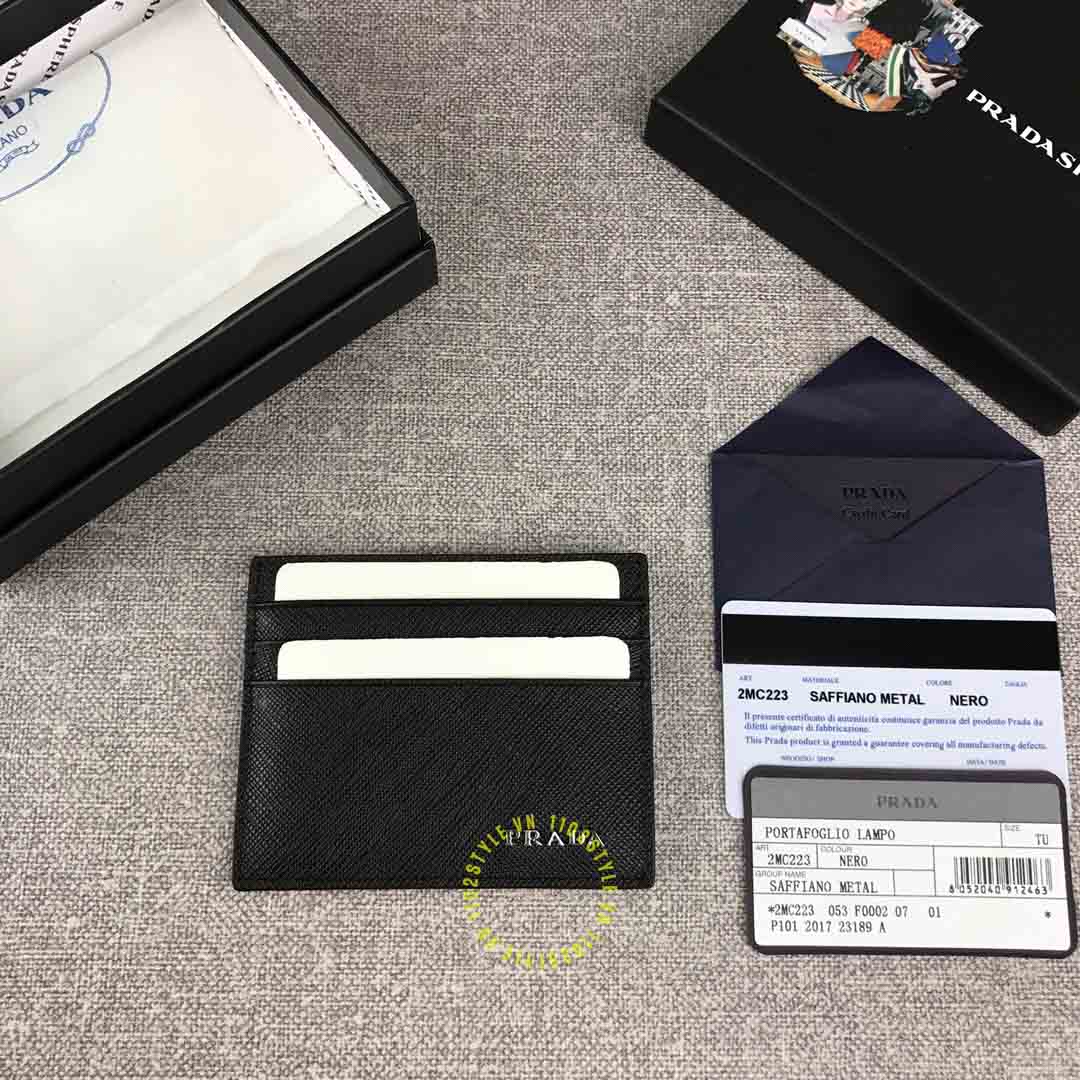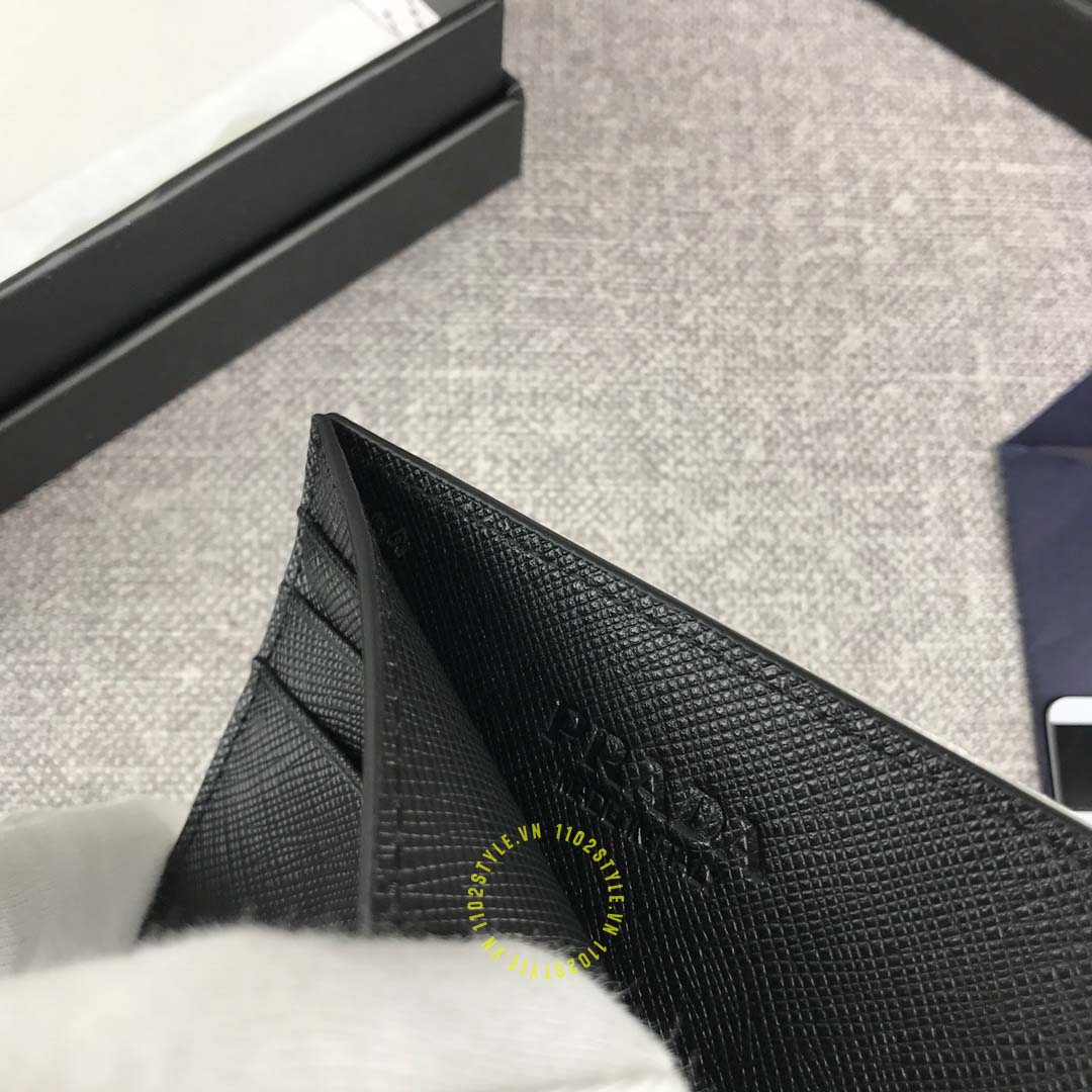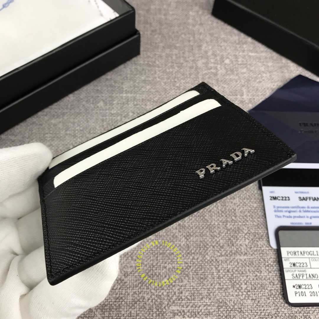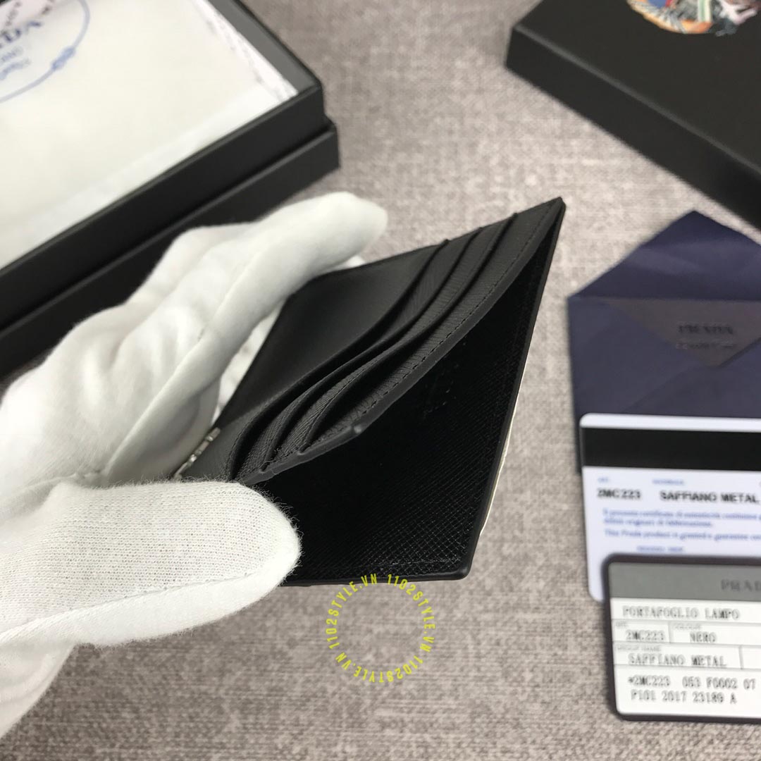 Ảnh chi tiết ví da sần Prada nam màu đen logo kim loại cao cấp giá tốt: