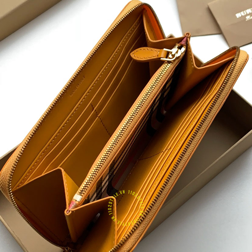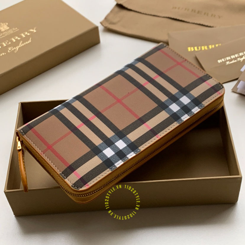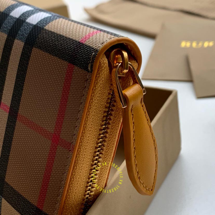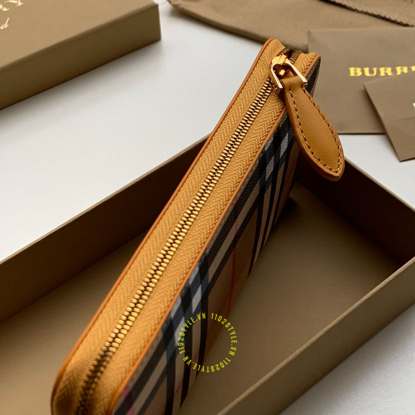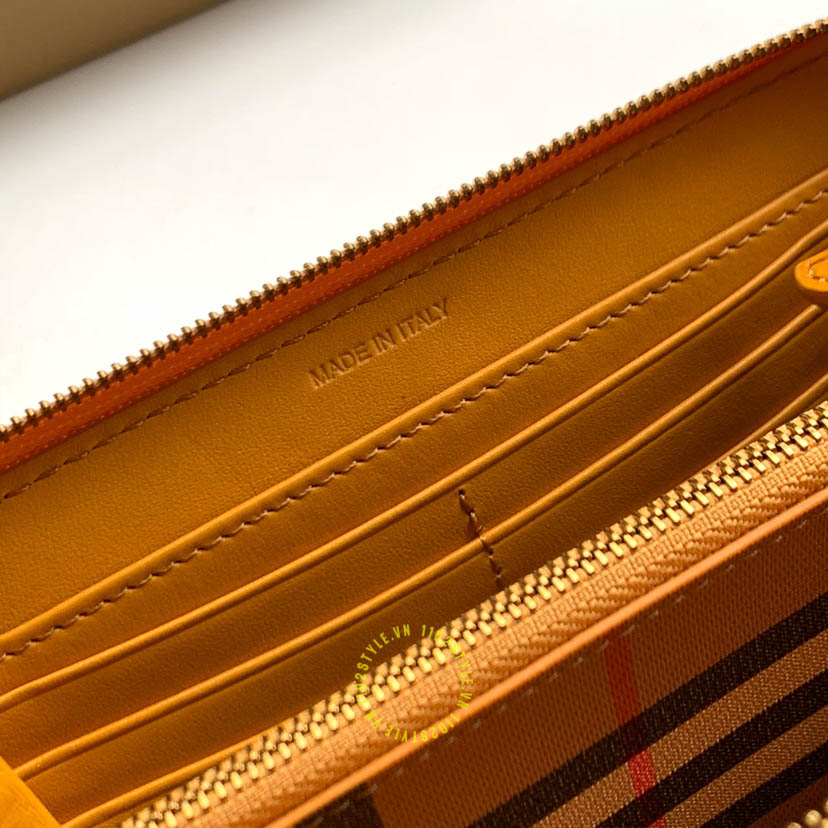 Ảnh sản phẩm ví dài cầm tay Burberry nữ màu nâu họa tiết kẻ sọc lót vàng: