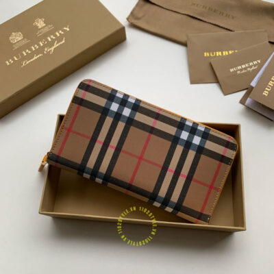 Ảnh sản phẩm ví dài cầm tay Burberry nữ màu nâu họa tiết kẻ sọc lót vàng: