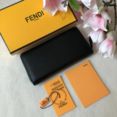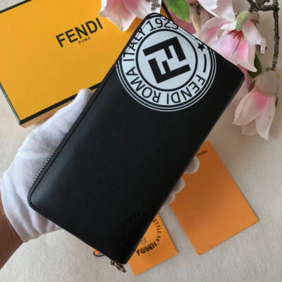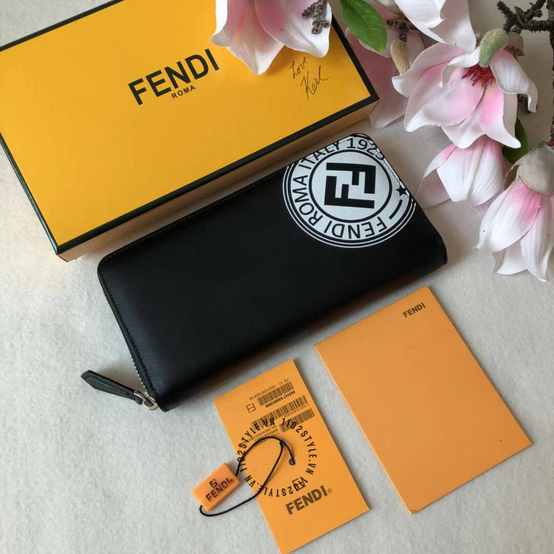 Hình ảnh chi tiết ví dài cầm tay Fendi màu đen replica 1:1 hoạ tiết nổi bật: