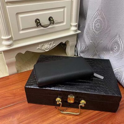 Hình ảnh chi tiết ví dài cầm tay Gucci nam màu đen Fake 1:1: