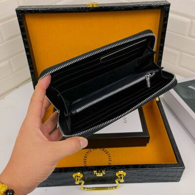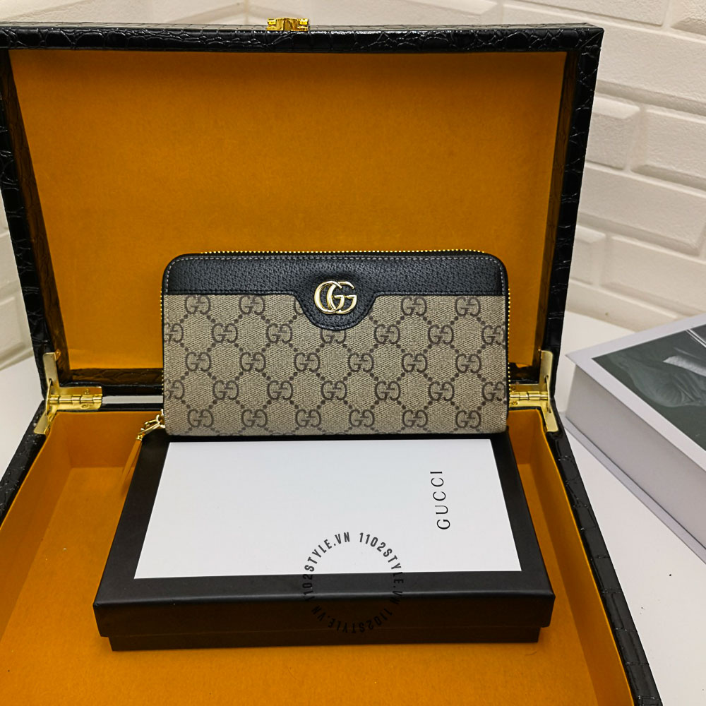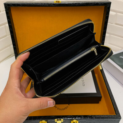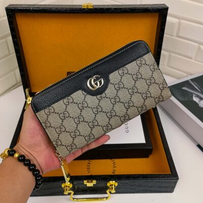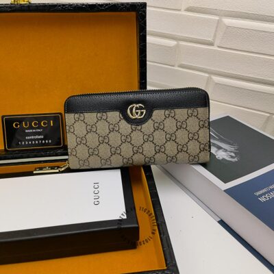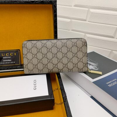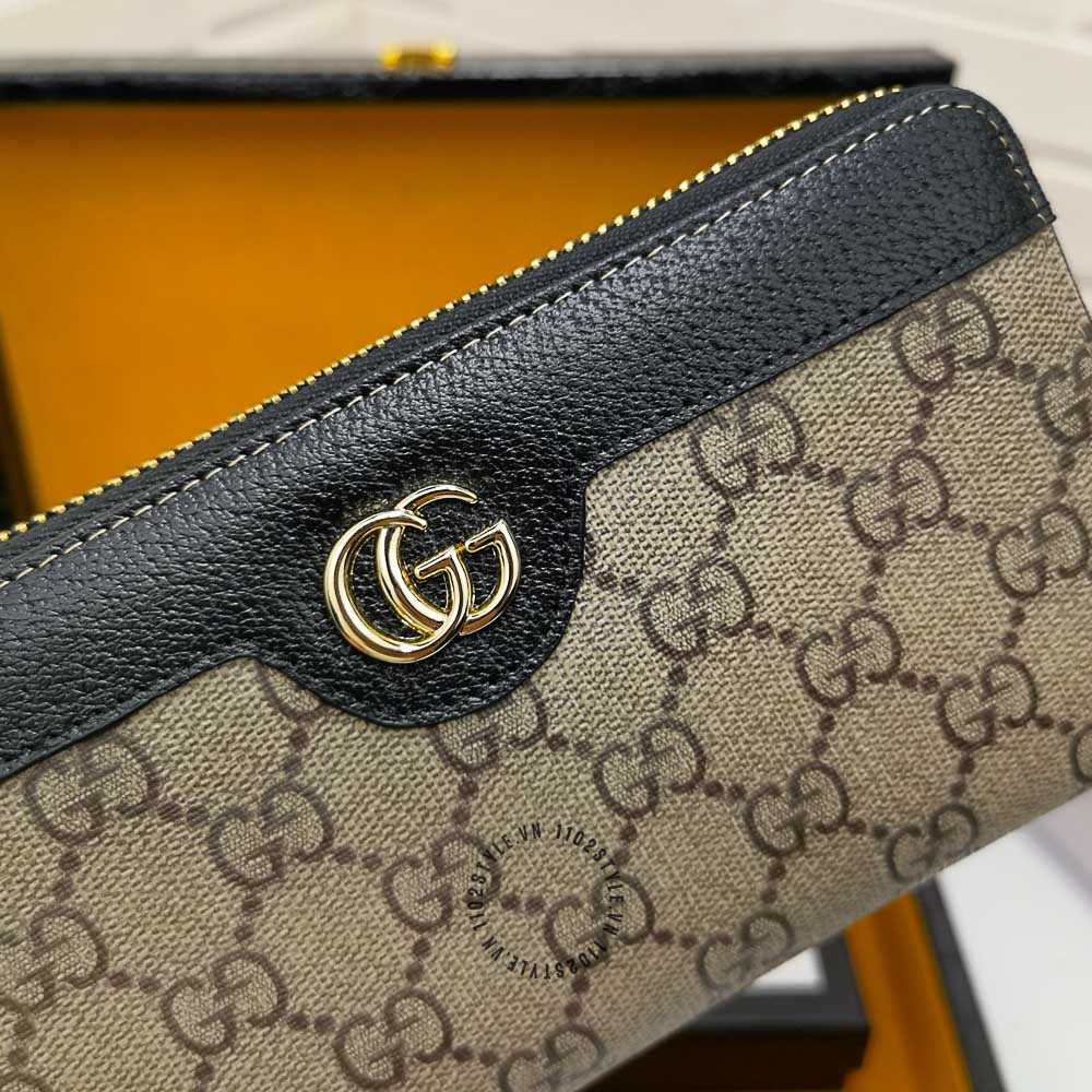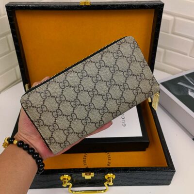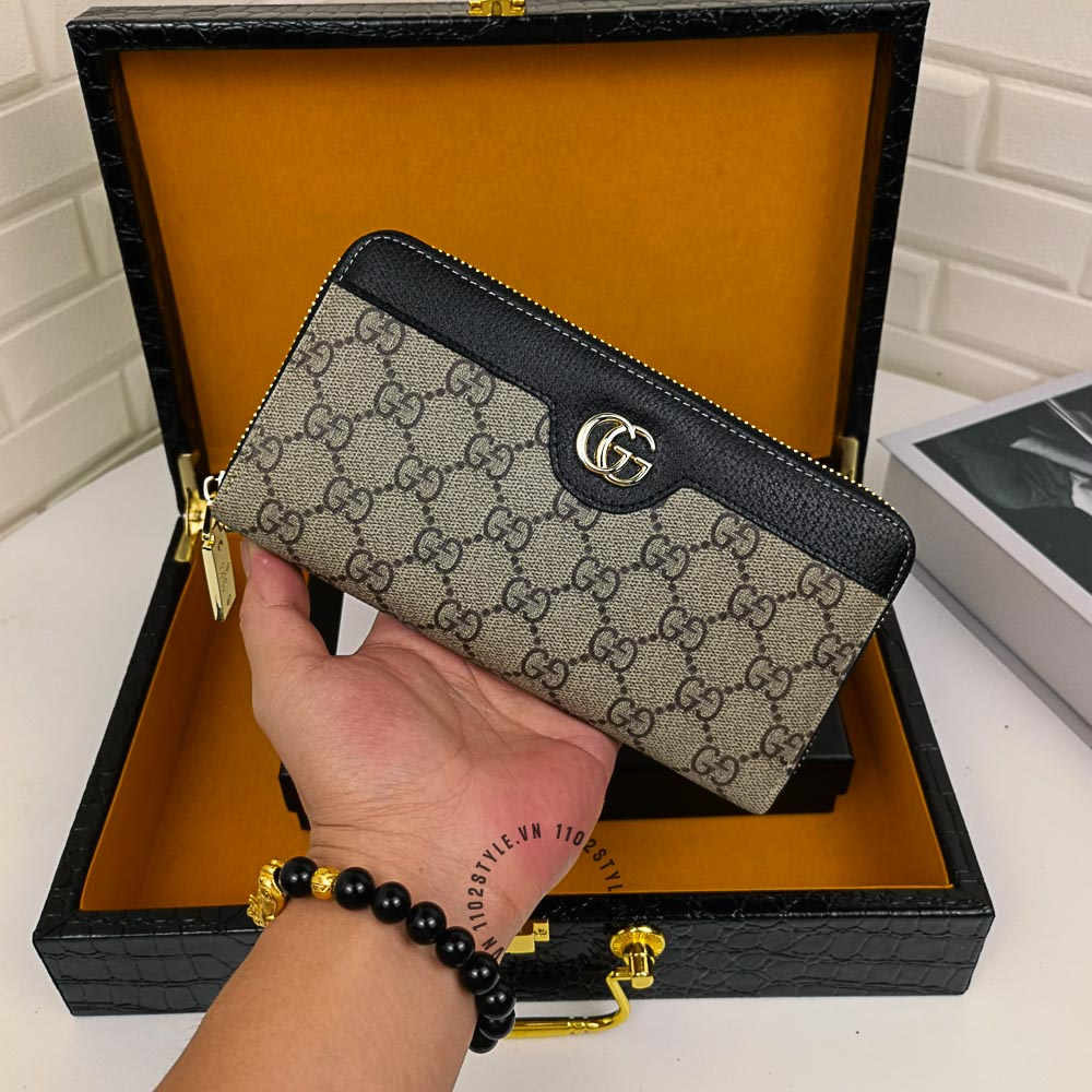 Hình ảnh chi tiết ví dài cầm tay Gucci nam màu ghi Fake 1:1 họa tiết nổi bật: