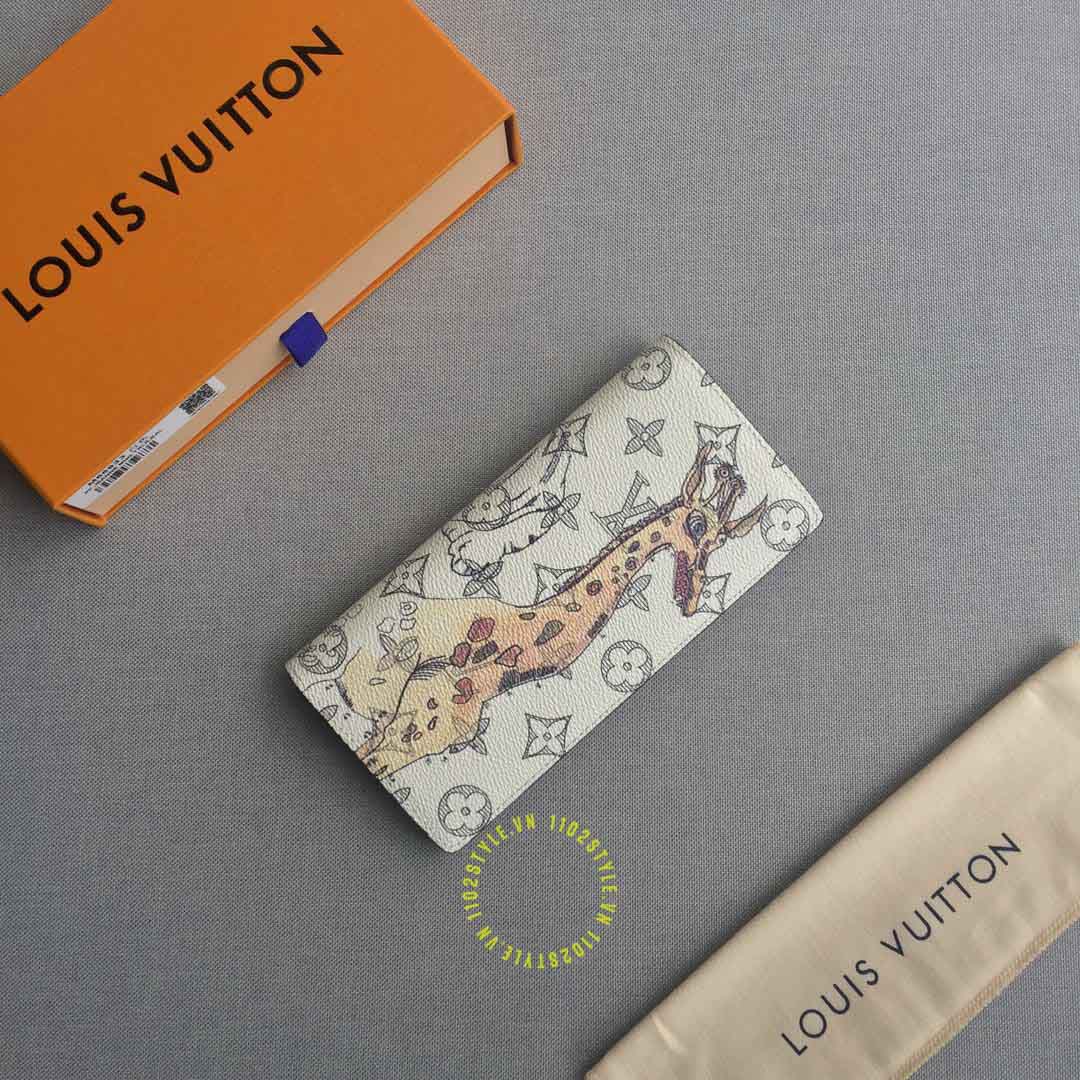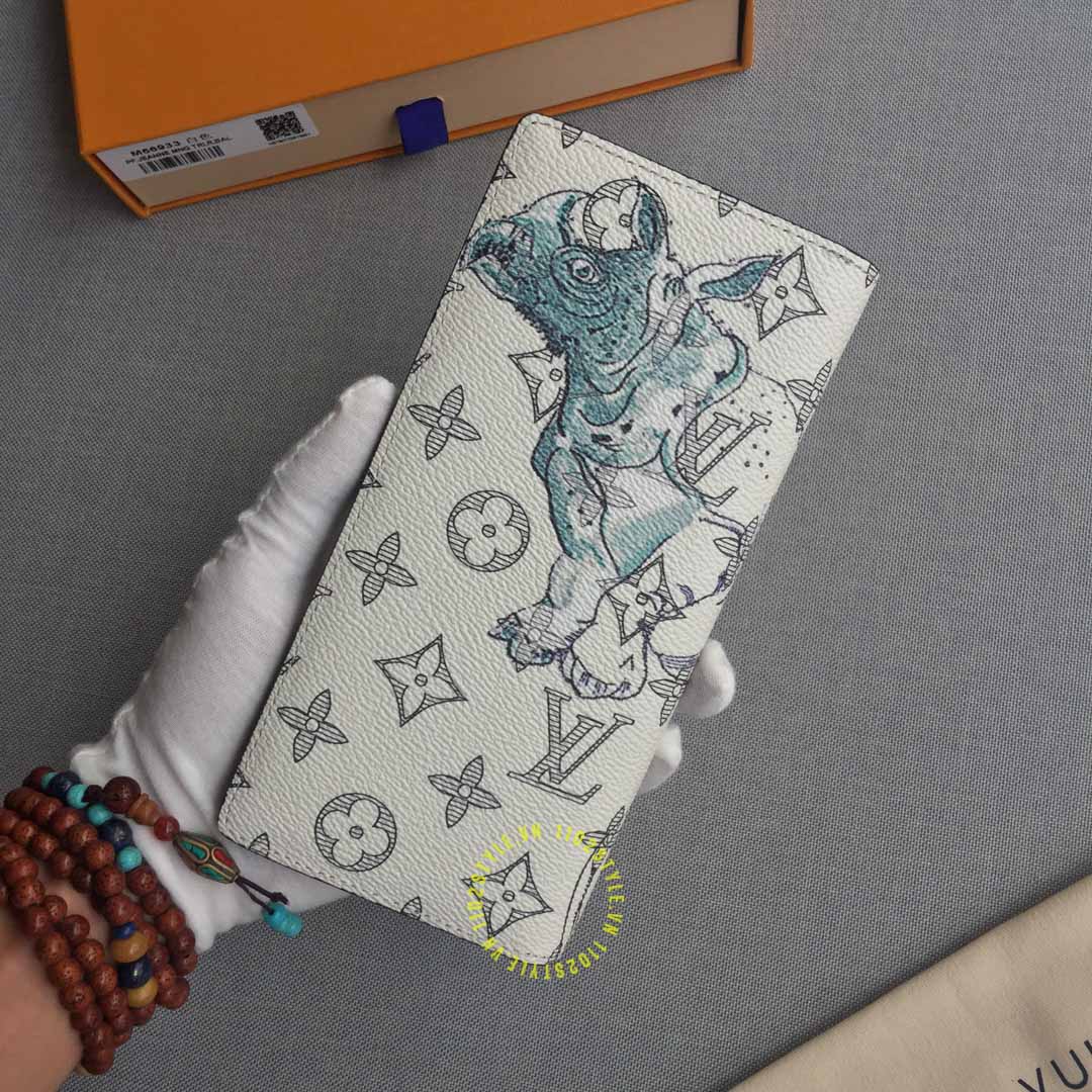 Hình ảnh chi tiết ví dài LV nam màu trắng họa tiết động vật chính hãng like authentic :