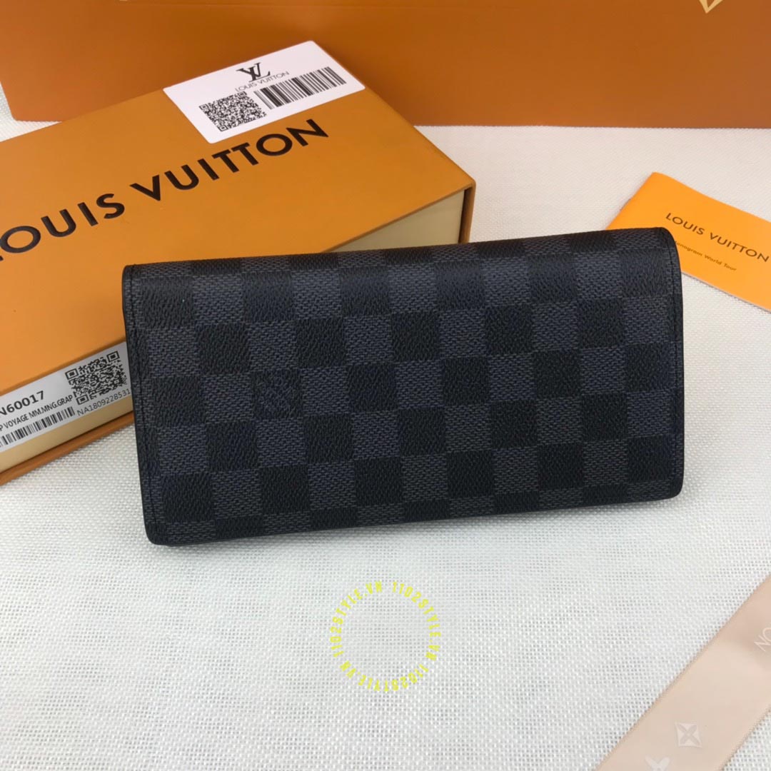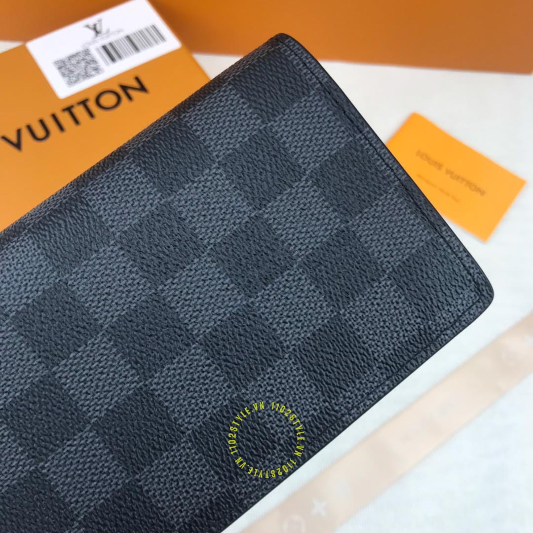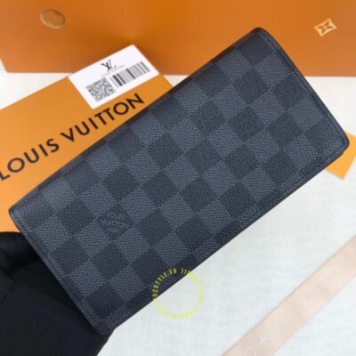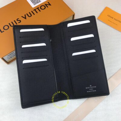Hình ảnh chi tiết tiết ví dài nam LV màu đen phối ghi họa tiết caro hàng hiệu cao cấp :