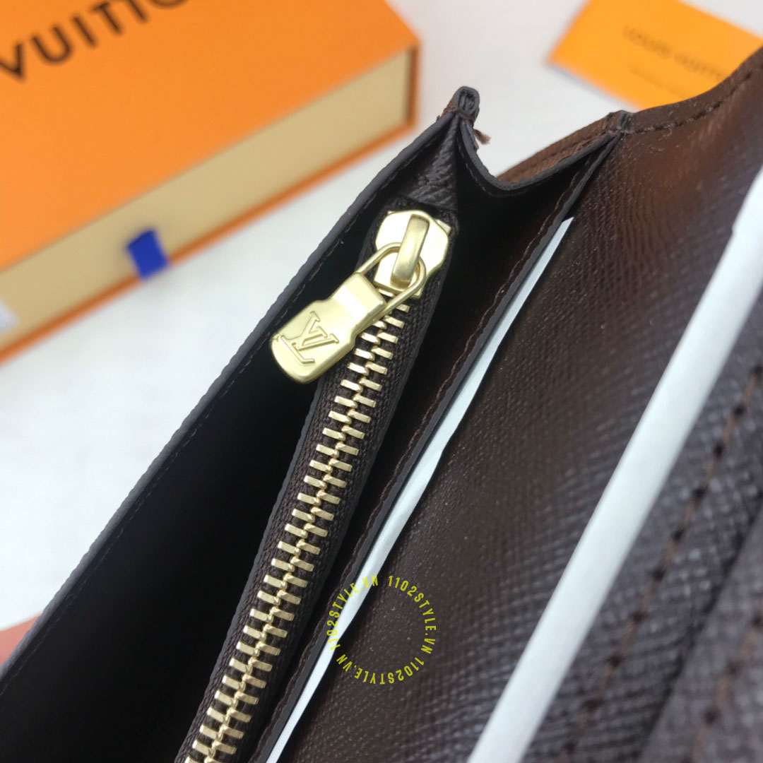 Hình ảnh chi tiết ví dài nam LV màu nâu họa tiết caro hàng hiệu like authentic :