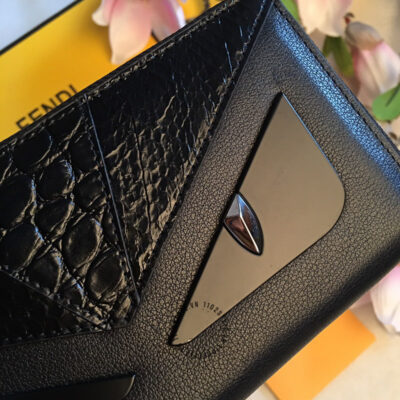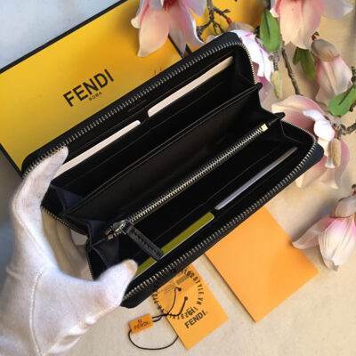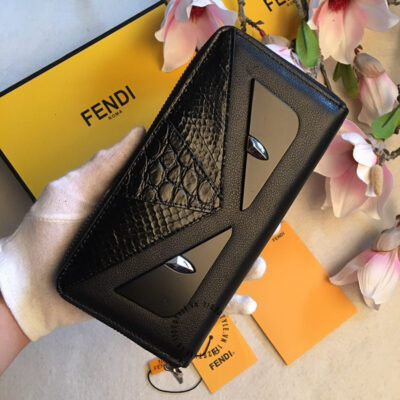 Hình ảnh chi tiết ví Fendi nam màu đen rep loại 1 hoạ tiết nổi bật cao cấp: