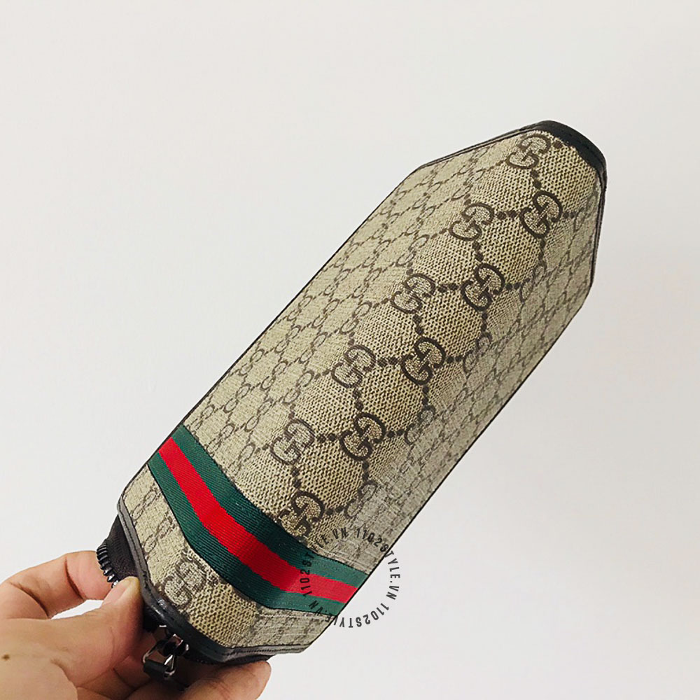 Hình ảnh chi tiết ví Gucci nam màu ghi Fake 1:1 chính hãng họa tiết cao cấp: