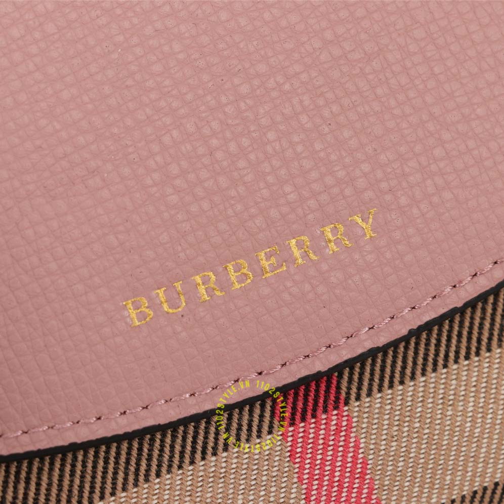 Ảnh chi tiết sản phẩm ví ngắn cầm tay Burberry nữ da sần màu hồng nhạt phối nâu:
