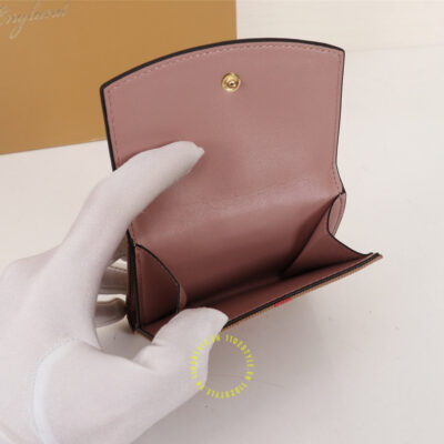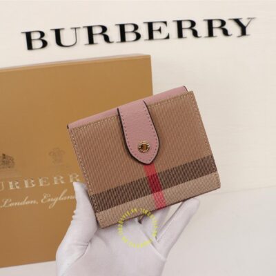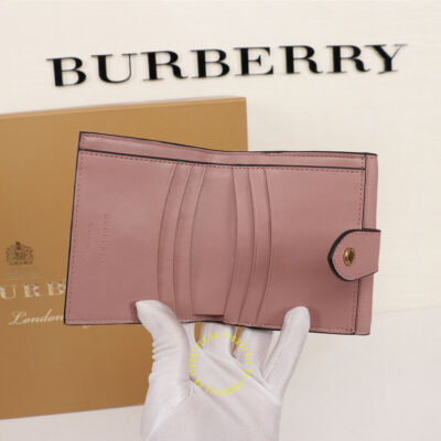 Ảnh chi tiết sản phẩm ví ngắn cầm tay Burberry nữ da sần màu hồng nhạt phối nâu: