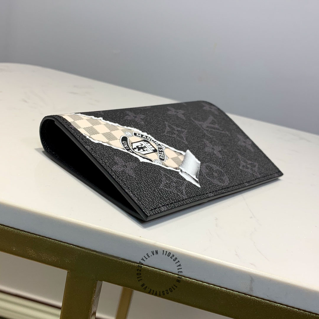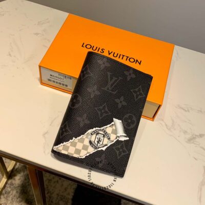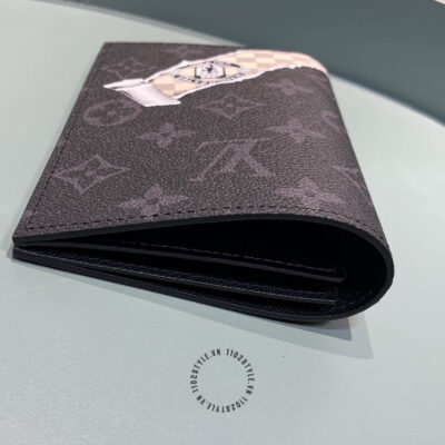 Ảnh chi tiết ví ngắn LV màu đen da sần hàng hiệu cao cấp mới nhất: