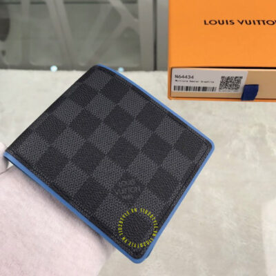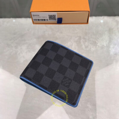 Hình ảnh chi tiết ví ngắn nam LV màu ghi phối đen họa tiết caro phiên bản cao cấp :